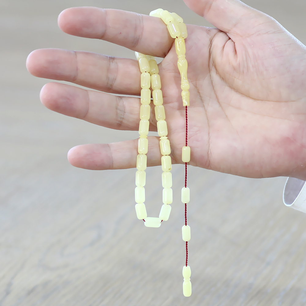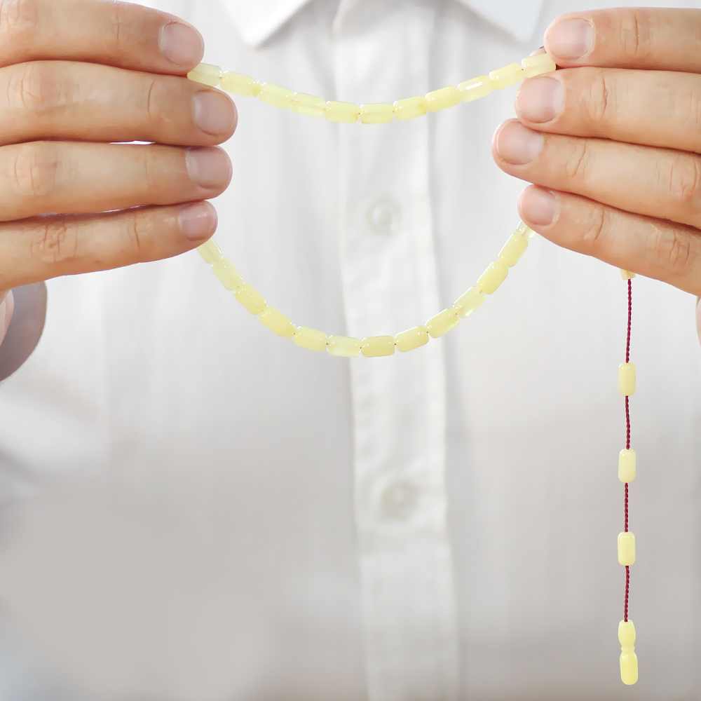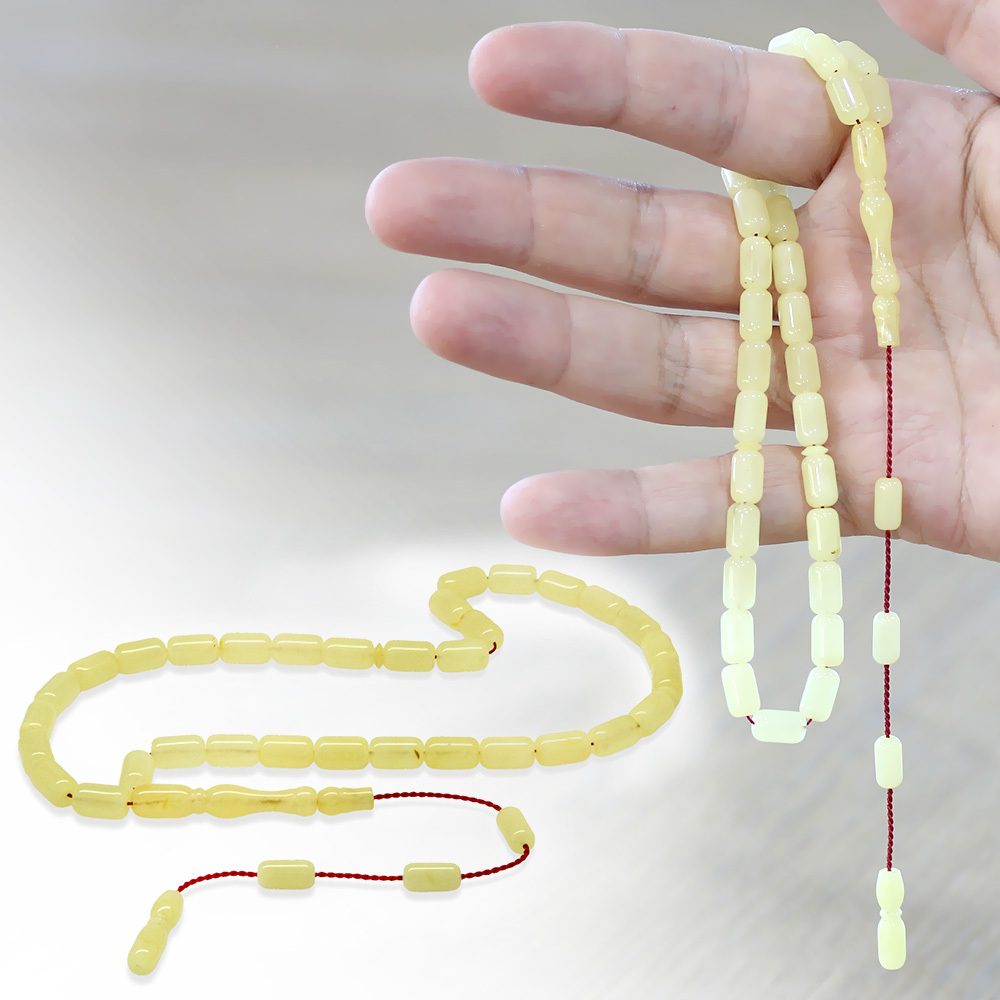 Damla Kehribar Tesbih - Sistemli Tasarım - Açık Sarı Renk - Kapsül Kesim