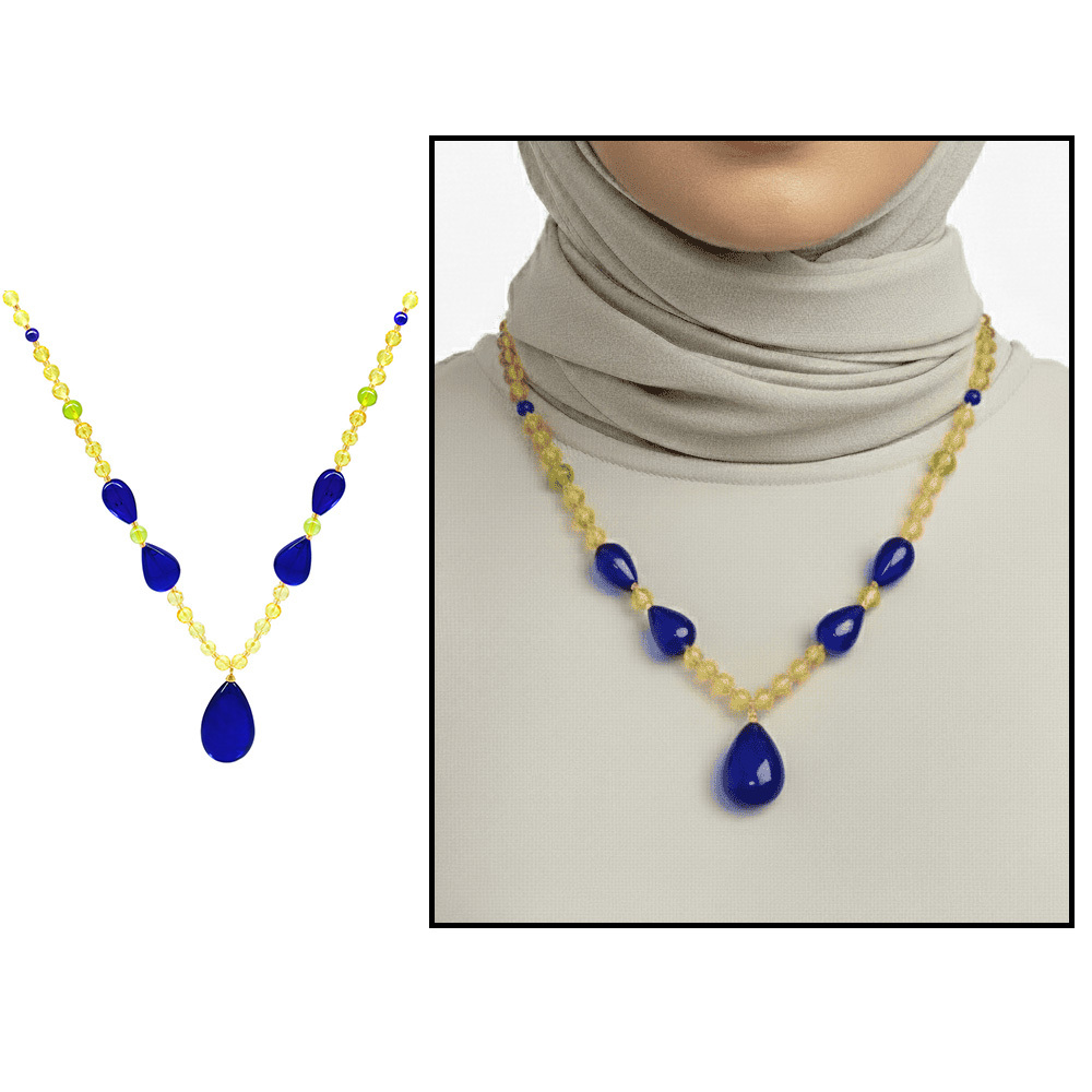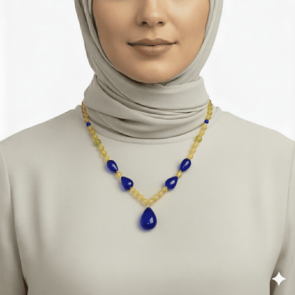 Gözyaşı Tasarım Faset Kesim Sarı Lacivert Doğal Damla Kehribar Kadın Kolye