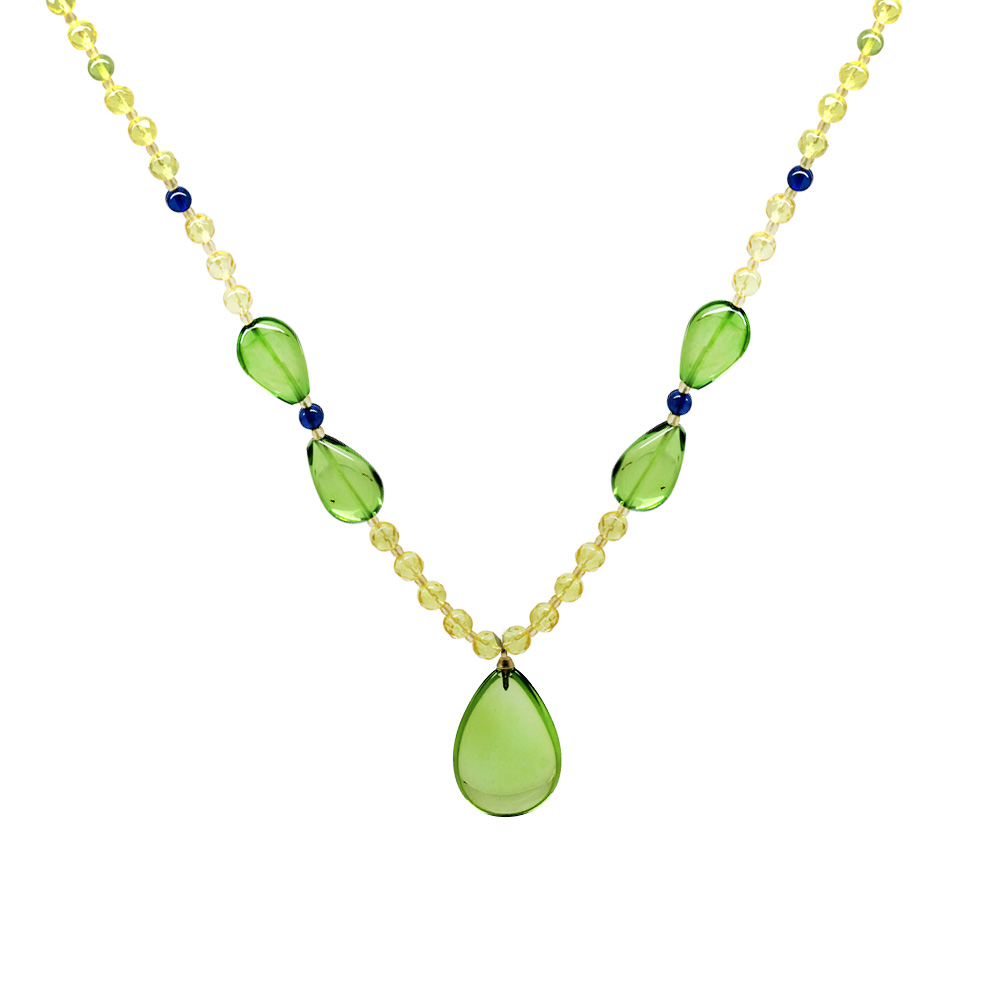 Gözyaşı Tasarım Faset Kesim Sarı Yeşil Doğal Damla Kehribar Kadın Kolye - 1