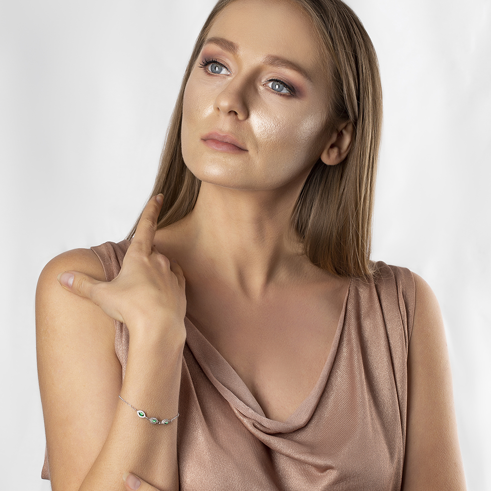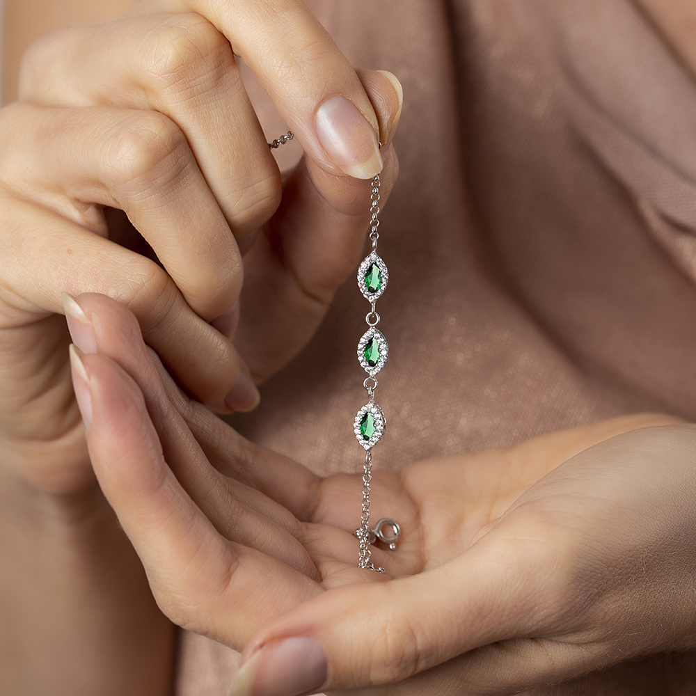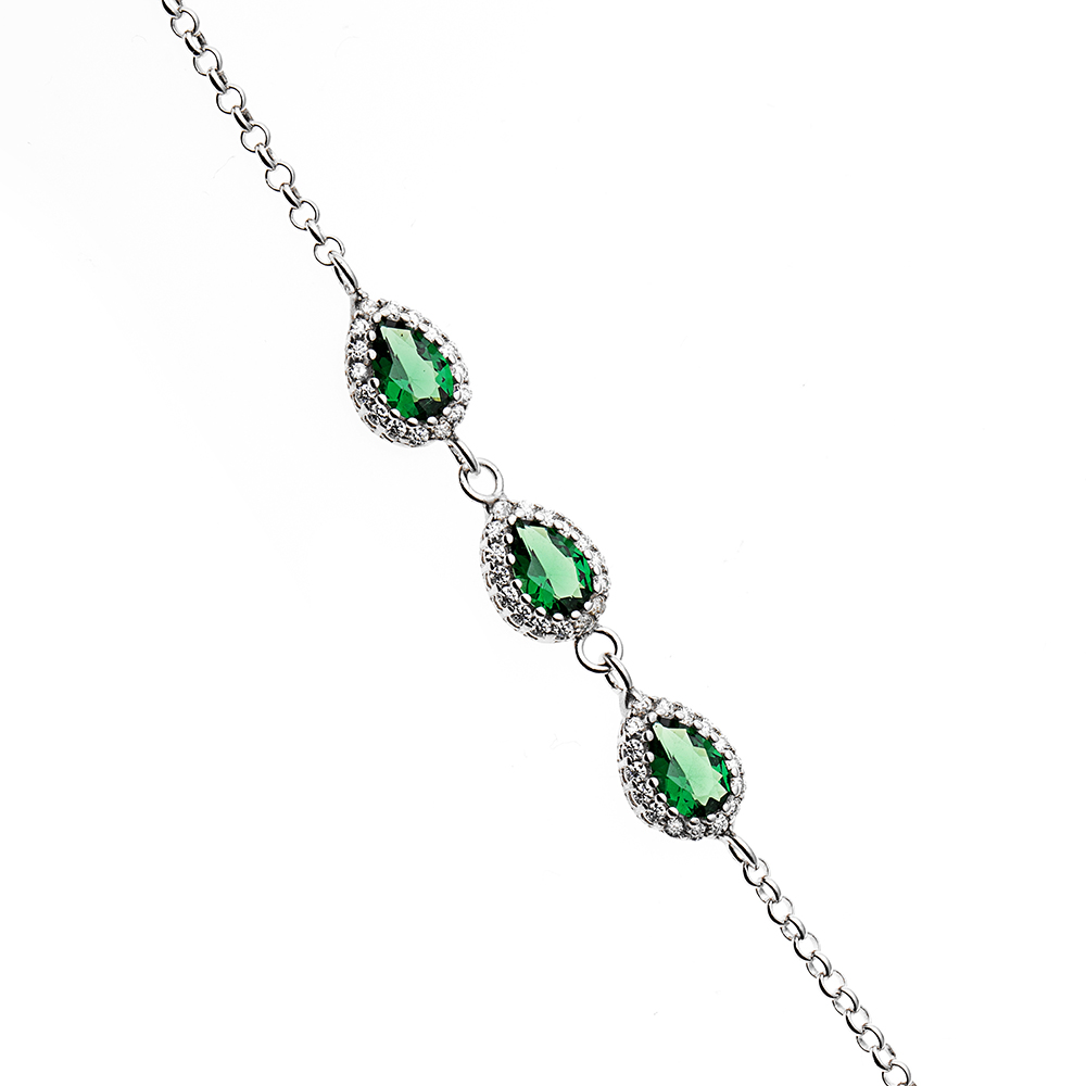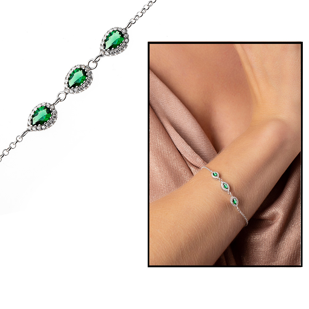 Damla Tasarım Yeşil Zirkon Taşlı 925 Ayar Gümüş Bileklik