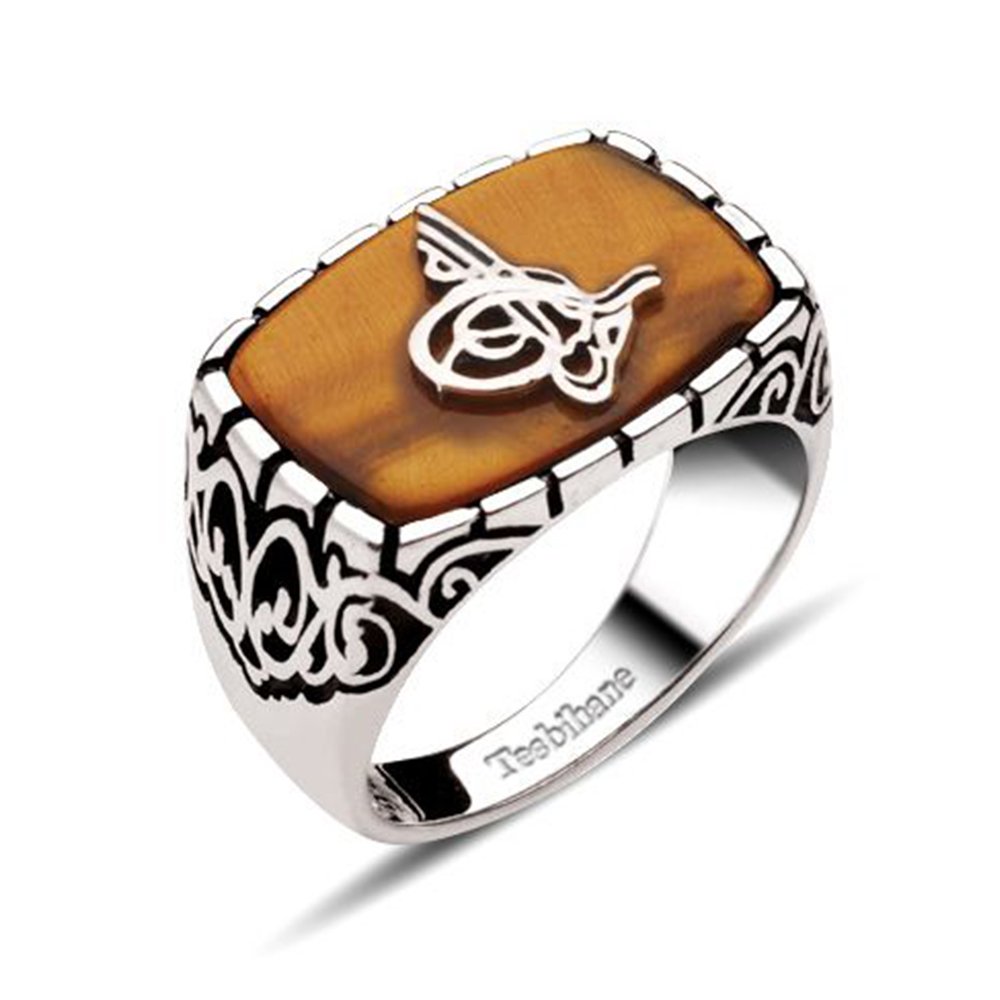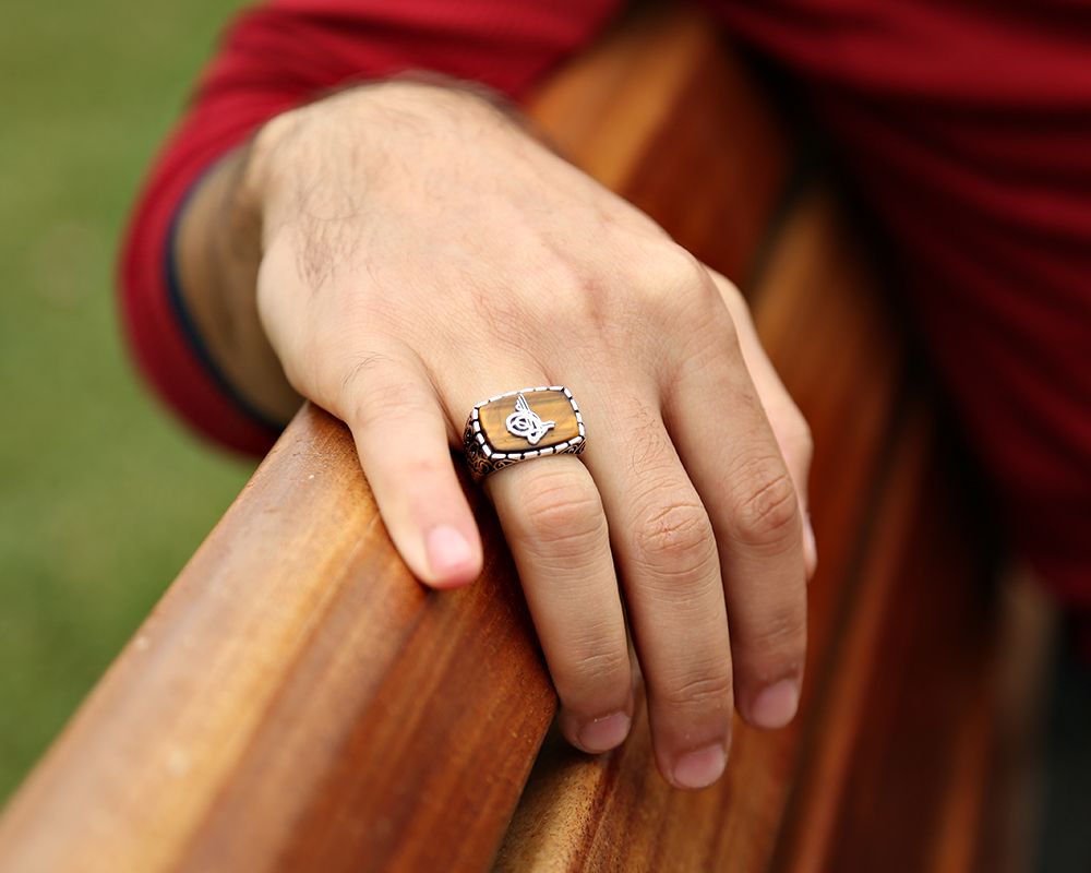 Dekoratif Model Kaplan Gözü Üzerine Tuğralı Gümüş Yüzük