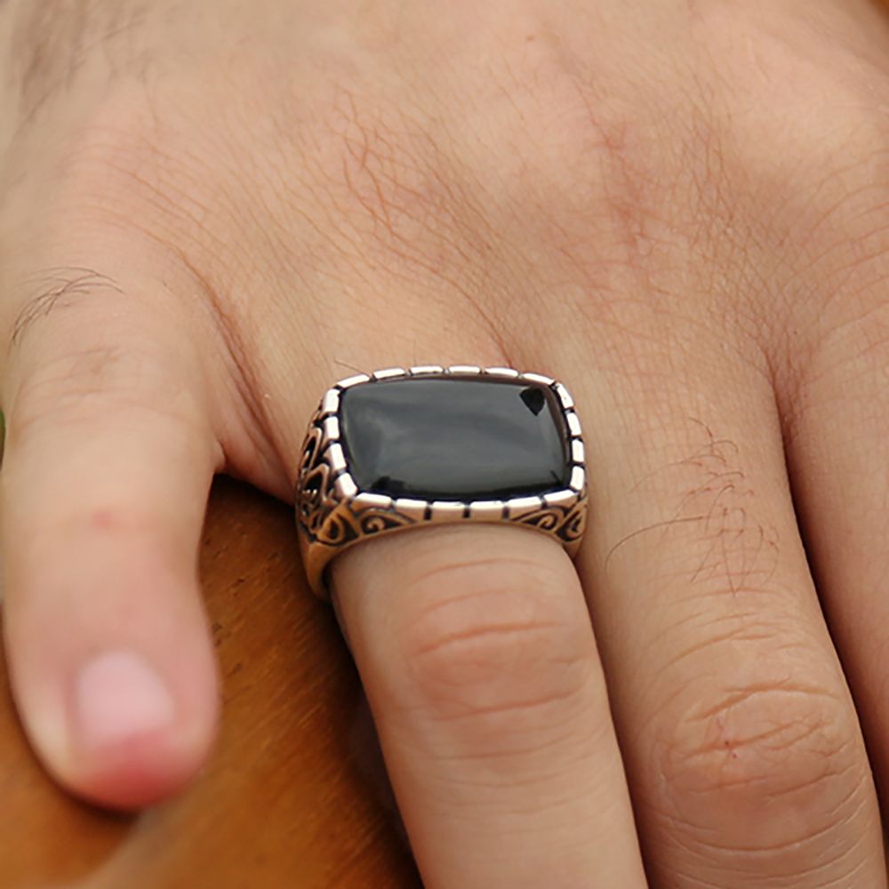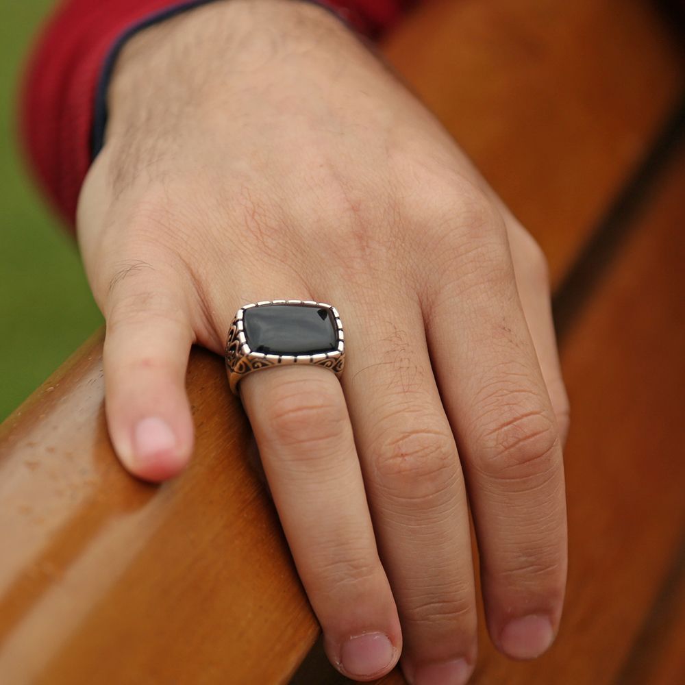 Dekoratif Model Oniks Taşlı Gümüş Yüzük - 2
