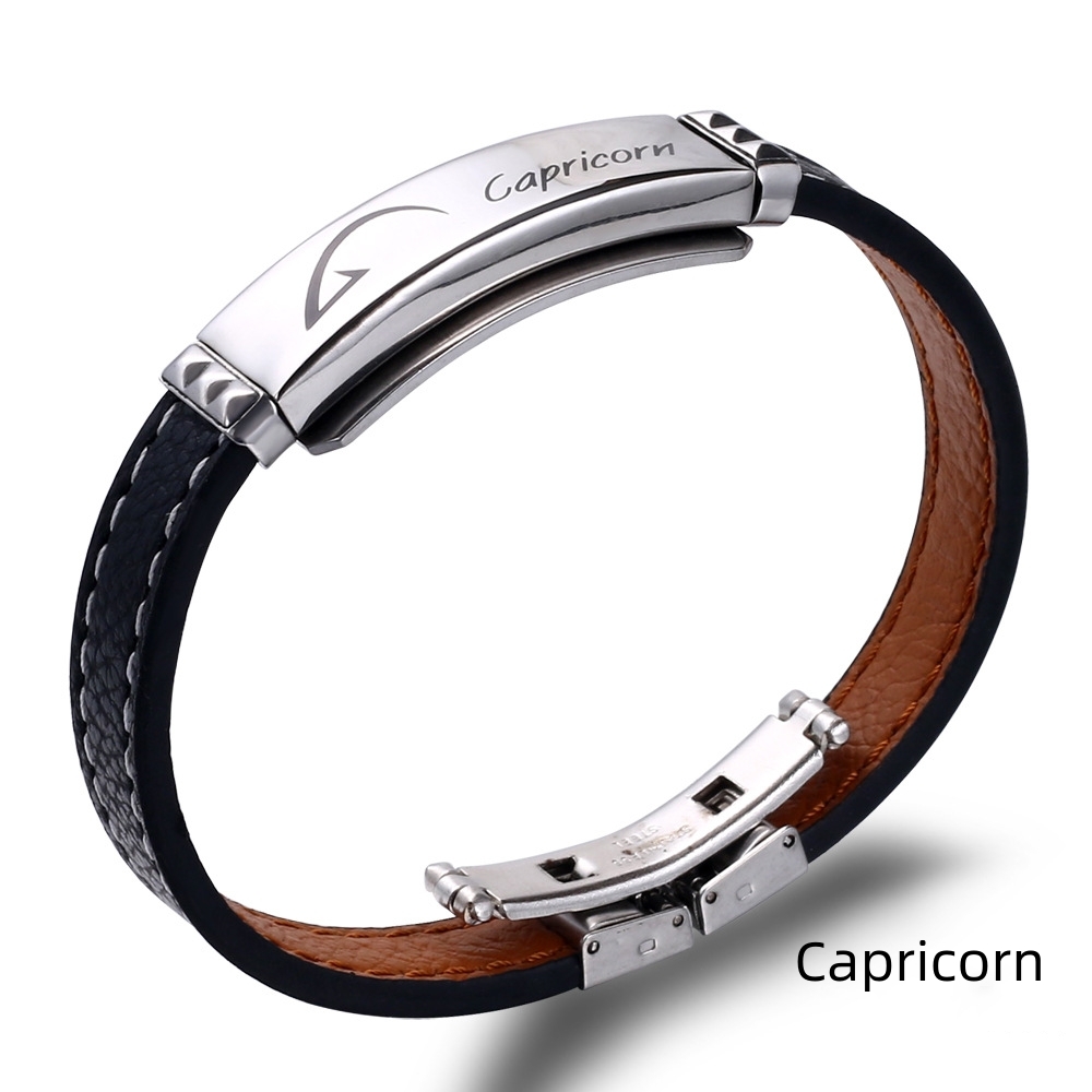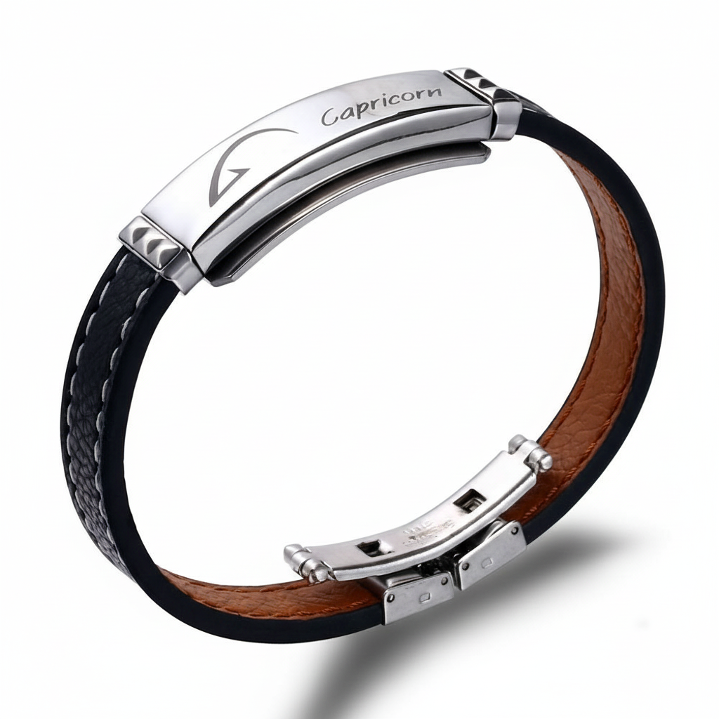 Deri ve Çelik Bileşim İsme Özel Yazılı Oğlak Burcu Kadın Bileklik