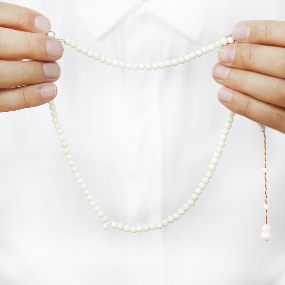 Deve Kemiği Namaz Tesbihi - Sistemli - Beyaz Renk - Küre Kesim