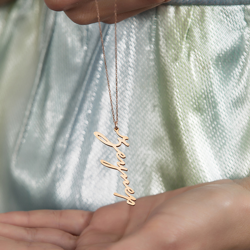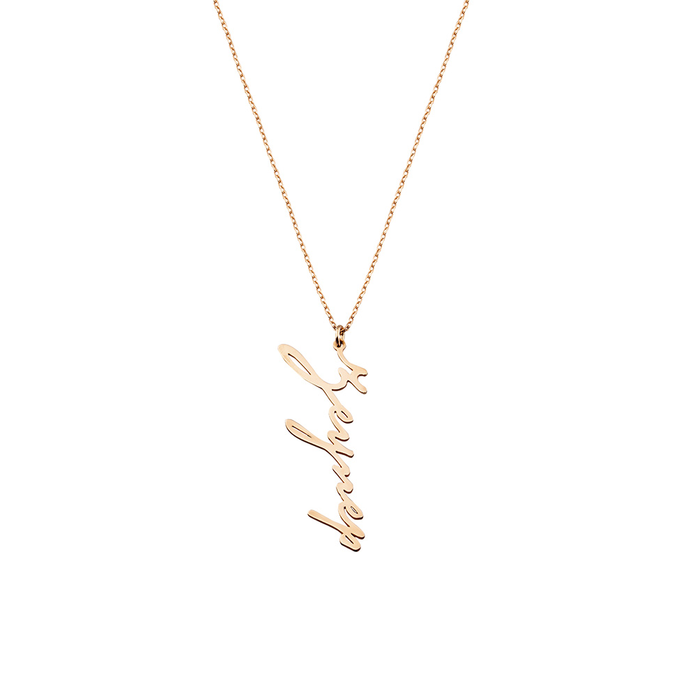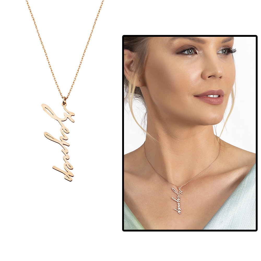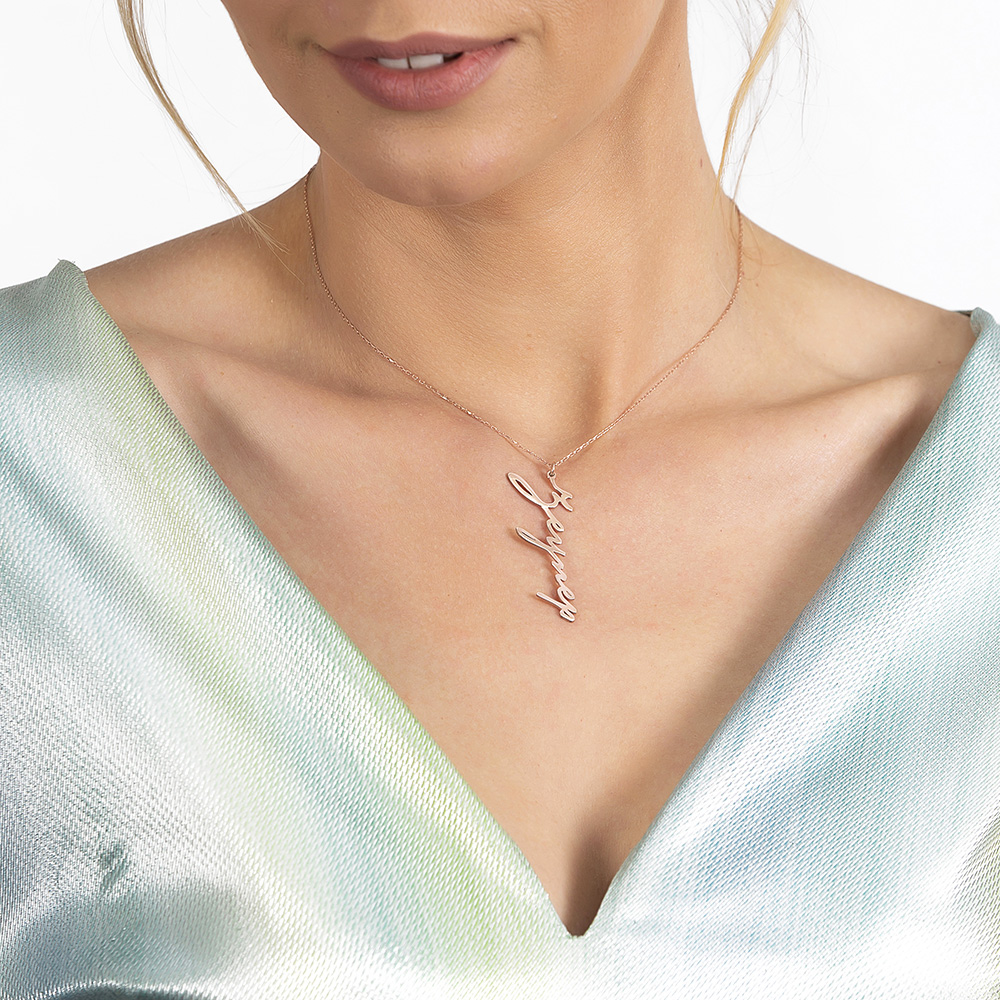 Dikey Tasarım İsme Özel Yazılı Rose Renk 925 Ayar Gümüş Bayan Kolye