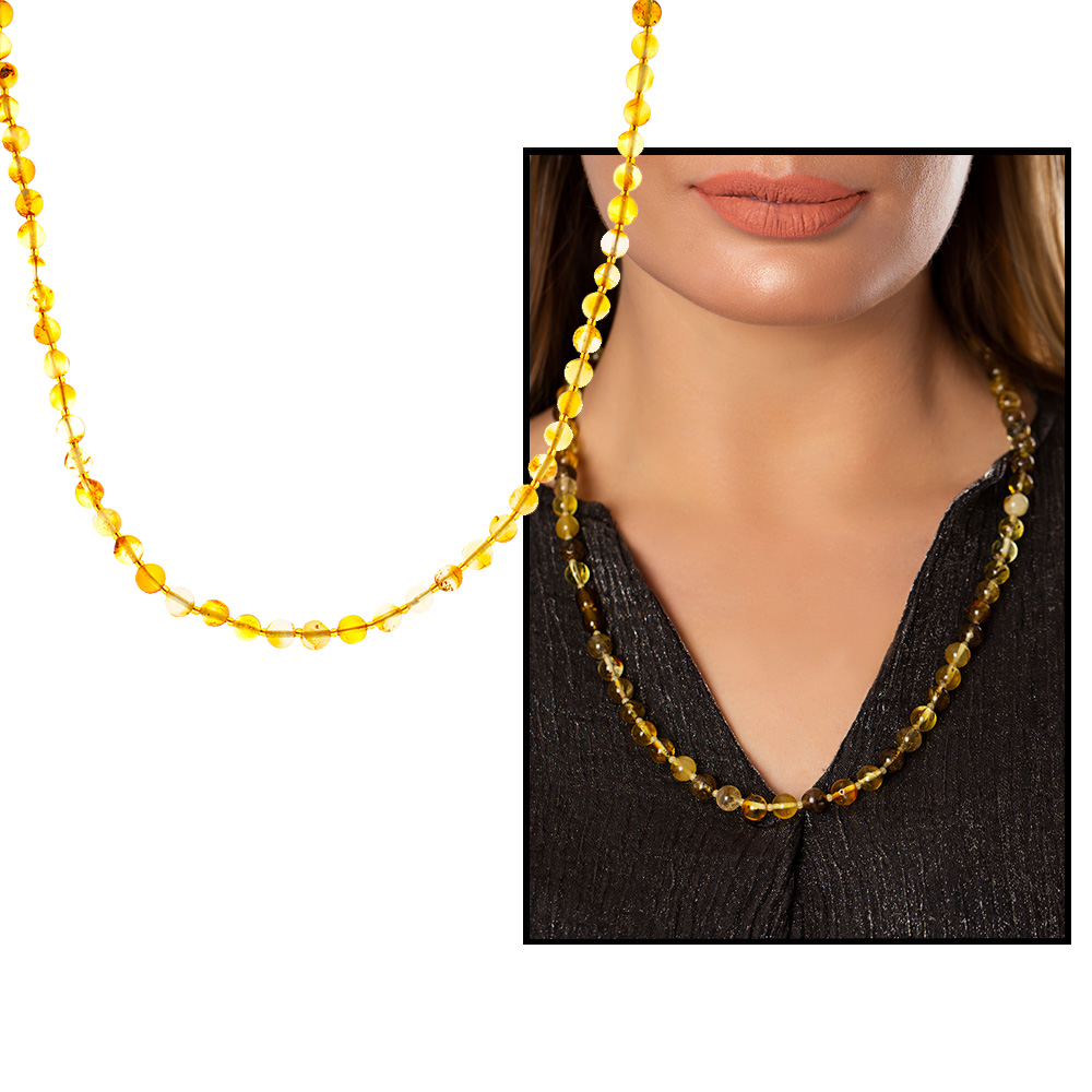 Açık Sarı Doğal Damla Kehribar Kadın Kolye - 1