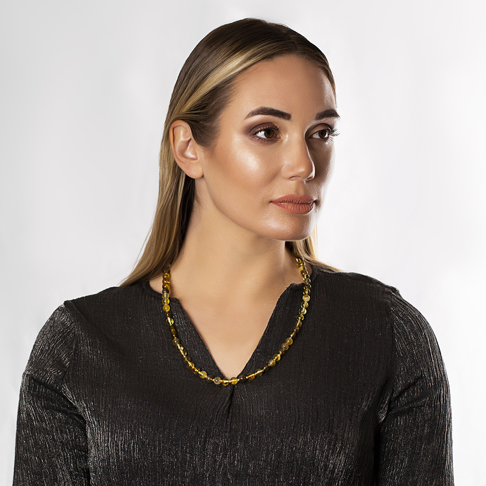 Açık Sarı Doğal Damla Kehribar Kadın Kolye