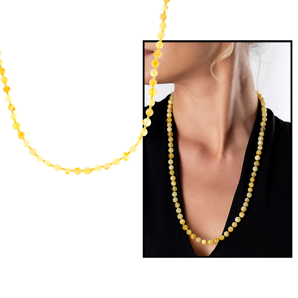 Açık Sarı Şeffaf Doğal Damla Kehribar Kadın Kolye - 3