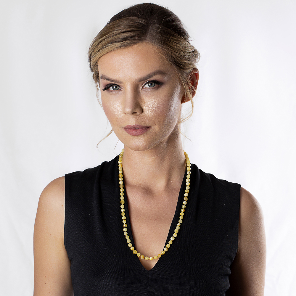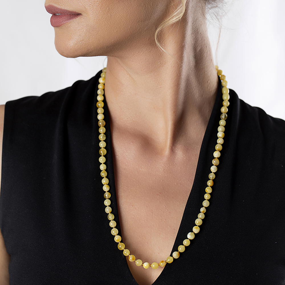 Açık Sarı Şeffaf Doğal Damla Kehribar Kadın Kolye - 6