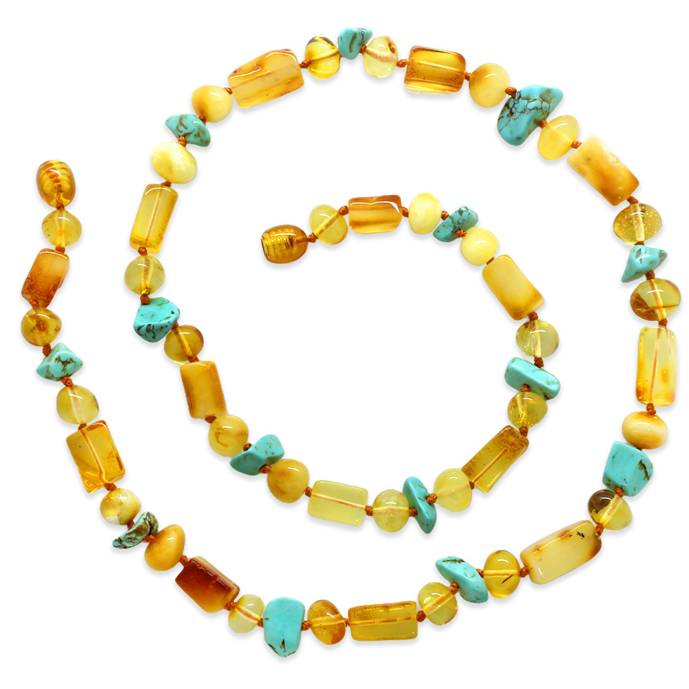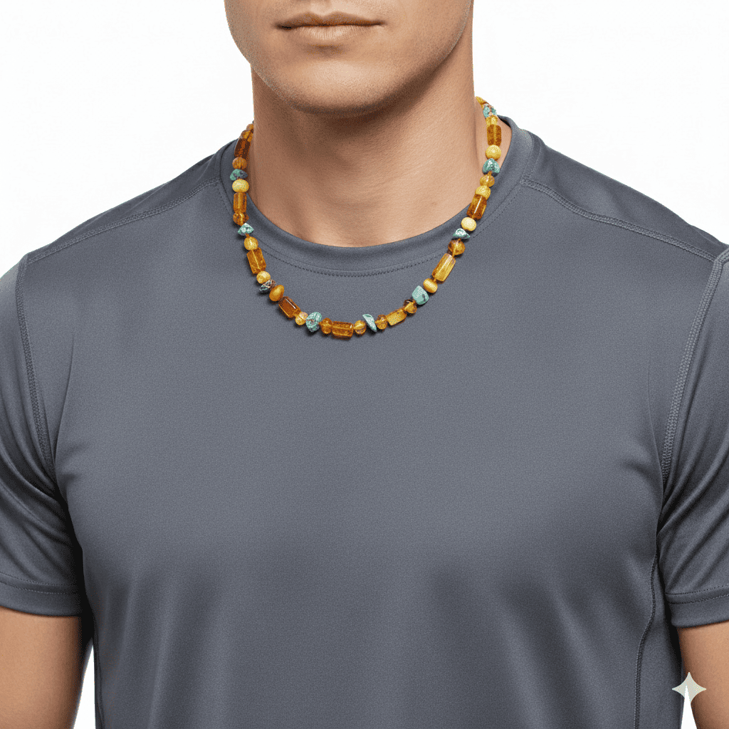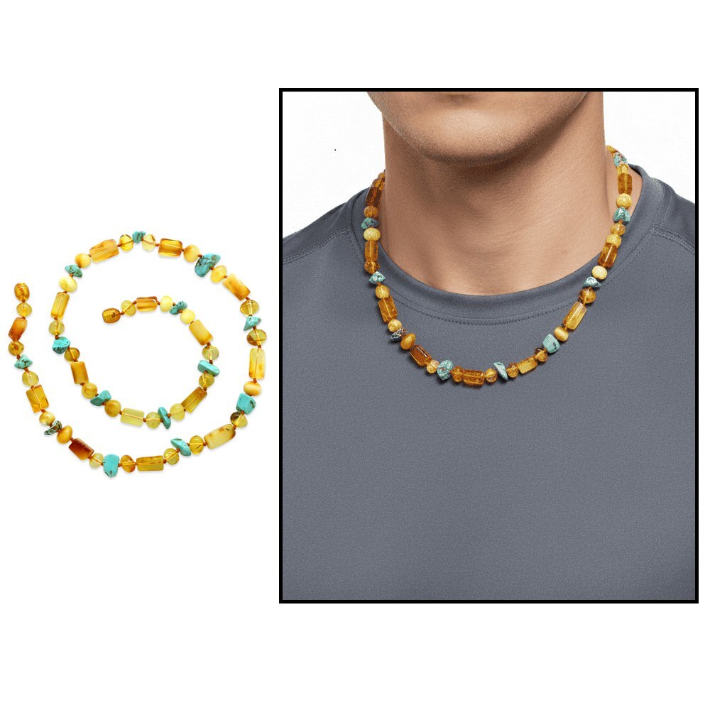 Doğal Form Bal Sarı Renkli Firuze Doğaltaş Süslemeli Hakiki Damla Kehribar Erkek Kolye
