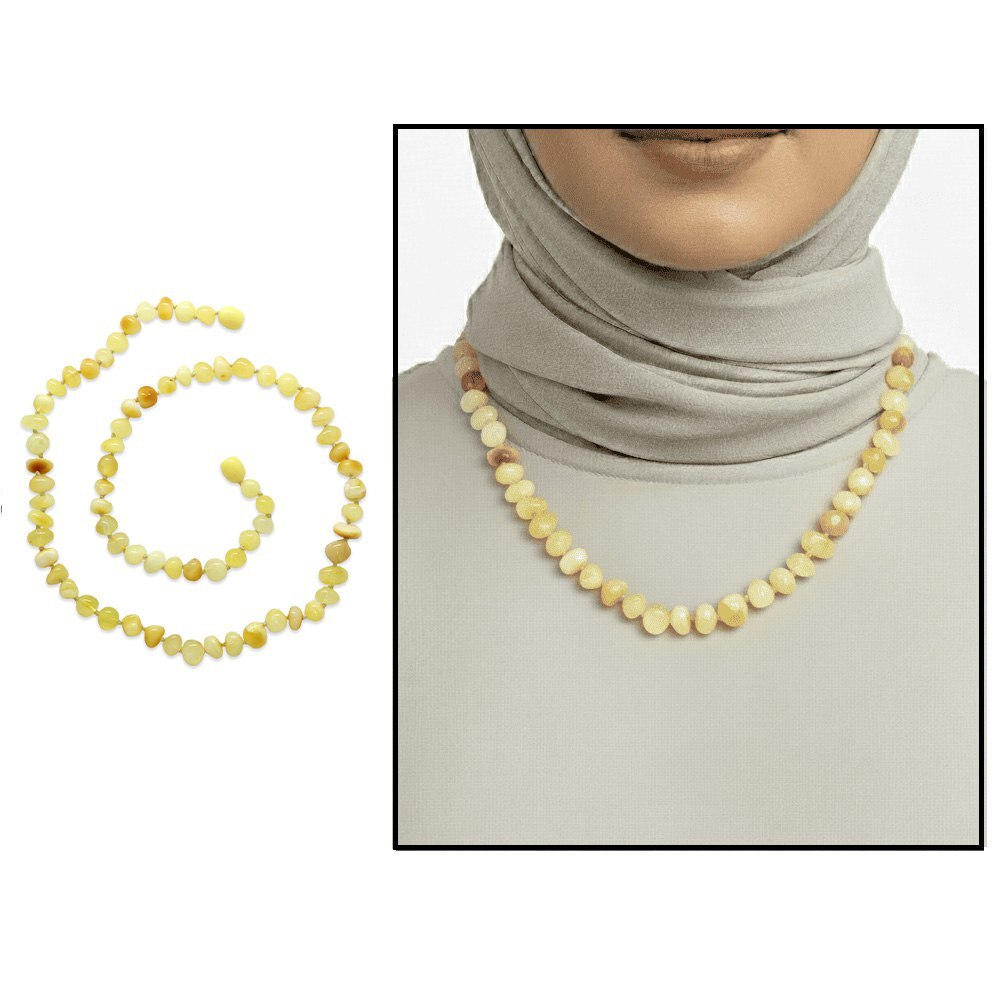 Doğal Form Sarı Beyaz Renkli Hakiki Damla Kehribar Kadın Kolye - 4