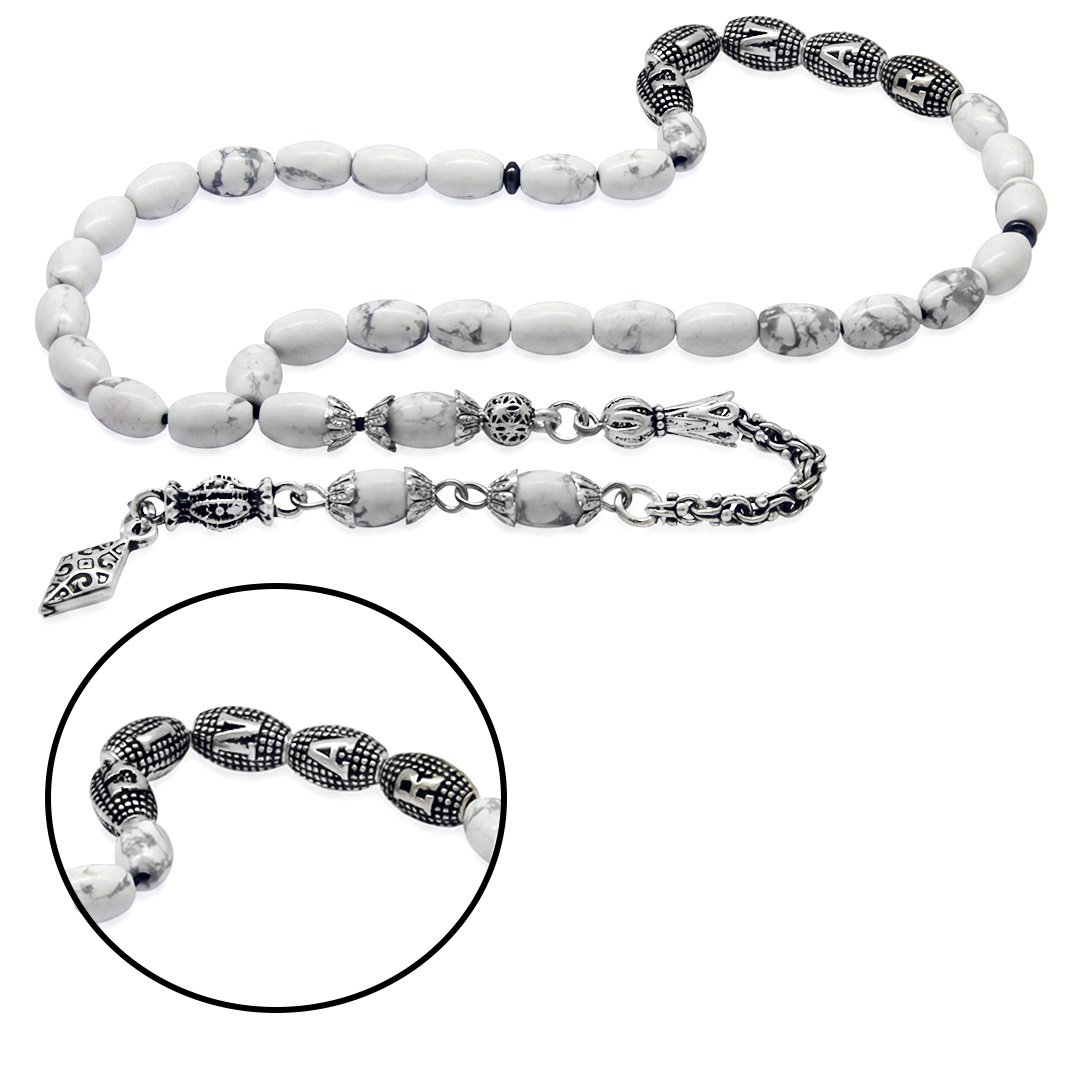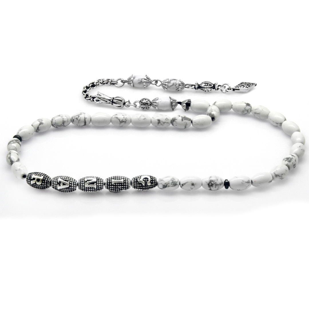 Doğaltaş Havlit Tesbih - Kararmaz Metal Arnavut Püsküllü - Kişiye Özel İsim Yazılı - Arpa Kesim