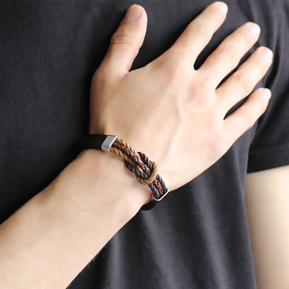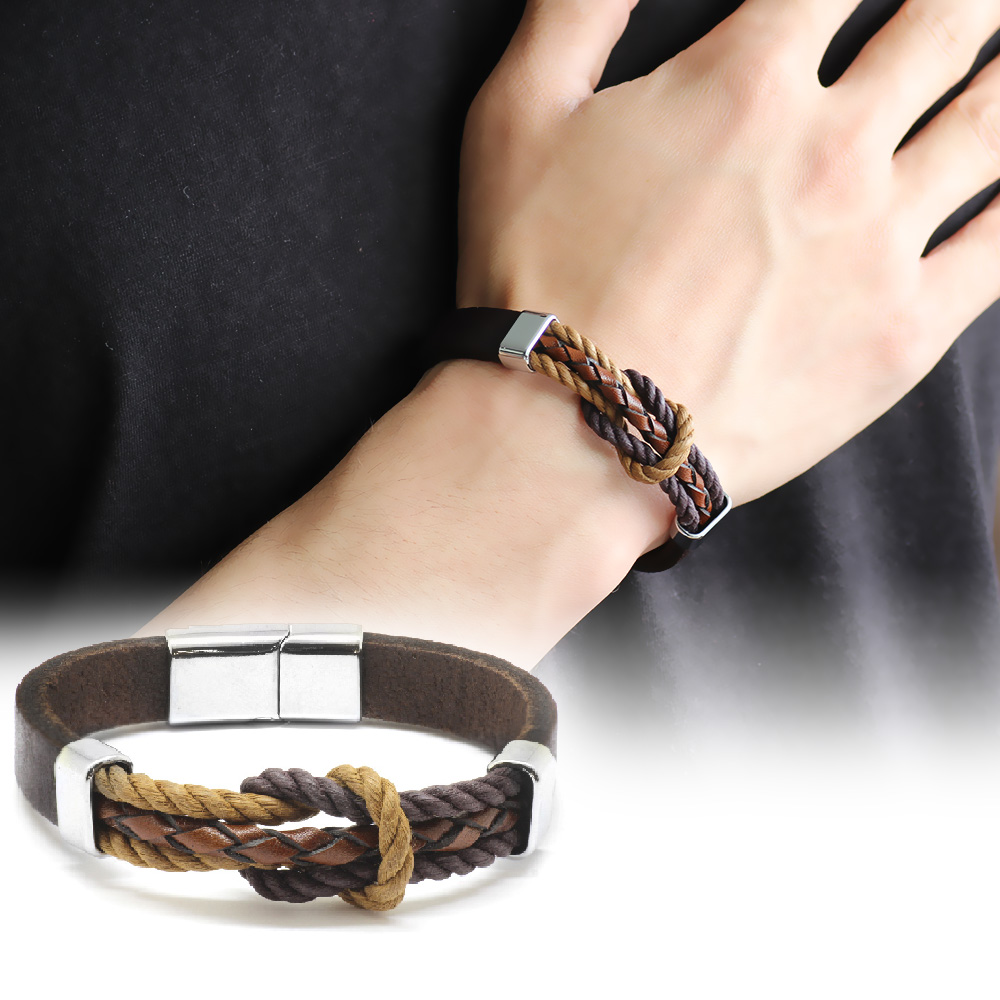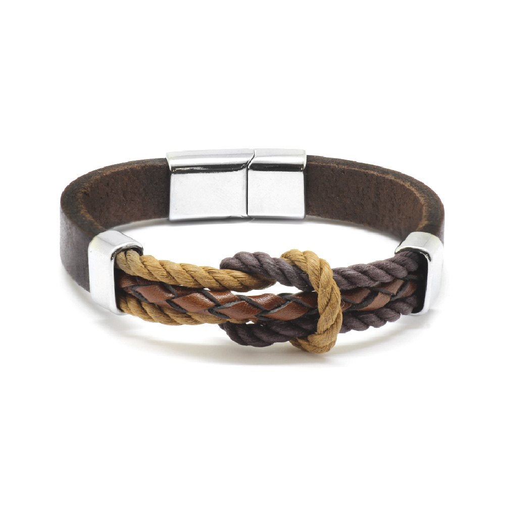 Düğüm Tasarım Kahverengi Deri Çelik Kombinli Erkek Bileklik