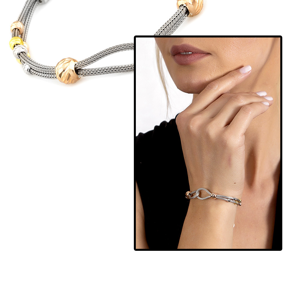 Düğüm Tasarım Gümüş Renk 925 Ayar Gümüş Dorika Kadın Bileklik - 1