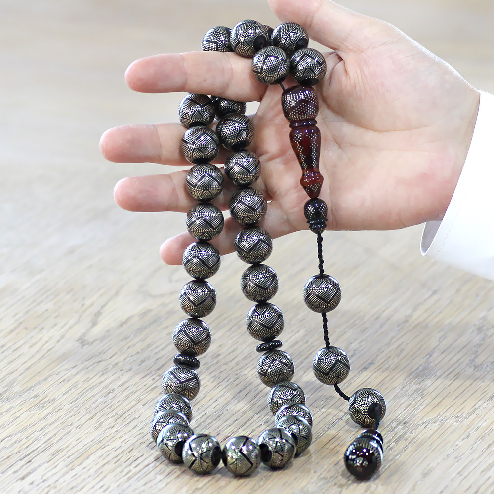 Tesbihinizin hem güvenle saklanacağı hem de estetik bir şekilde sergileneceği, tamamen el işçiliğiyle hazırlanmış özel bir kutu. Doğal ahşap ve kadife astarın mükemmel uyumu, tesbihinize lüks bir dokunuş katarken, aynı zamanda uzun ömürlü kullanım sağlar. Kutu rengi ve deseni stok durumuna göre değişiklik gösterebilir.