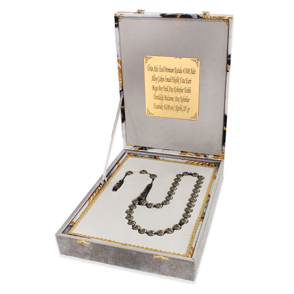 Premium Kutulu 45300 Adet Alloy Çakım İsmail Ekelik Usta Eseri Mega Boy Yeşil Ateş Kehribar Tesbih