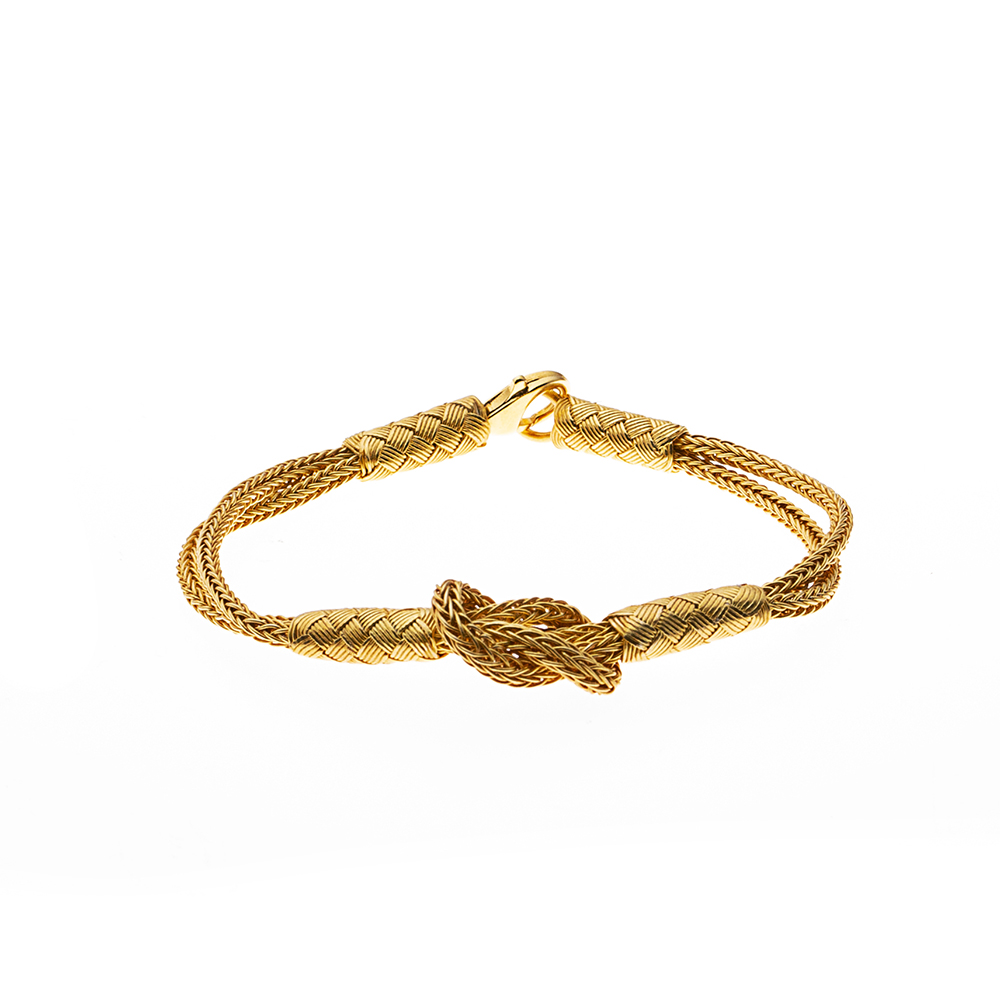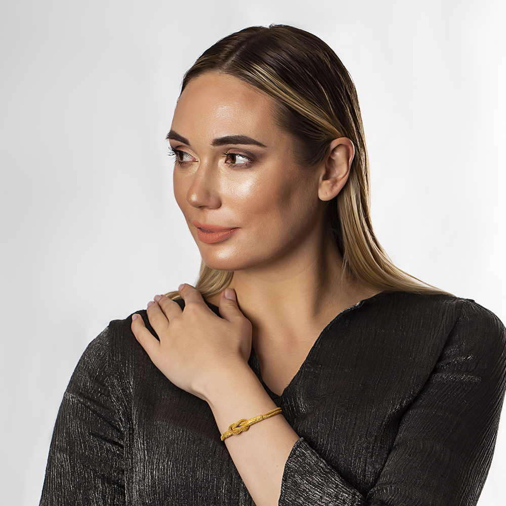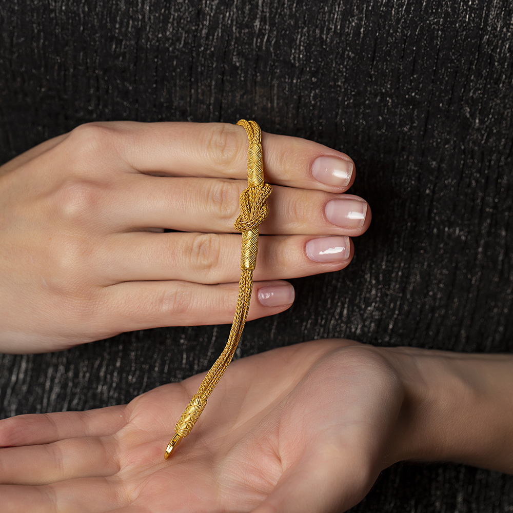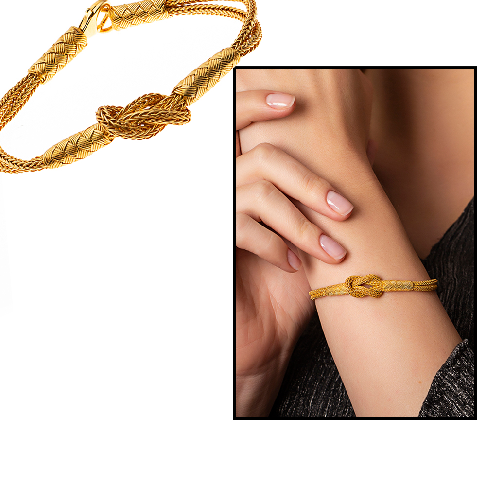 El İşçiliği Düğüm Tasarım Altın Renk 1000 Ayar Gümüş Kazaz Bileklik
