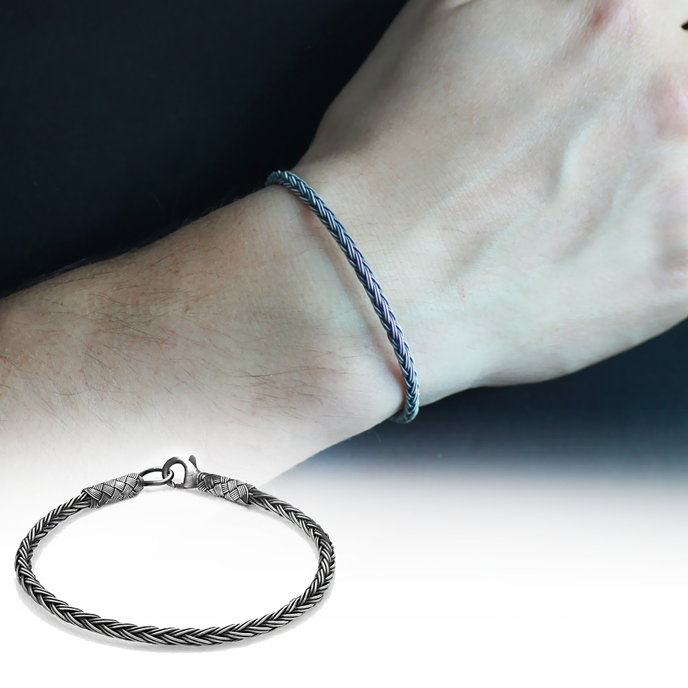El İşçiliği Modern Foxtail Tasarım 1000 Ayar Gümüş Kazaz Erkek Bileklik