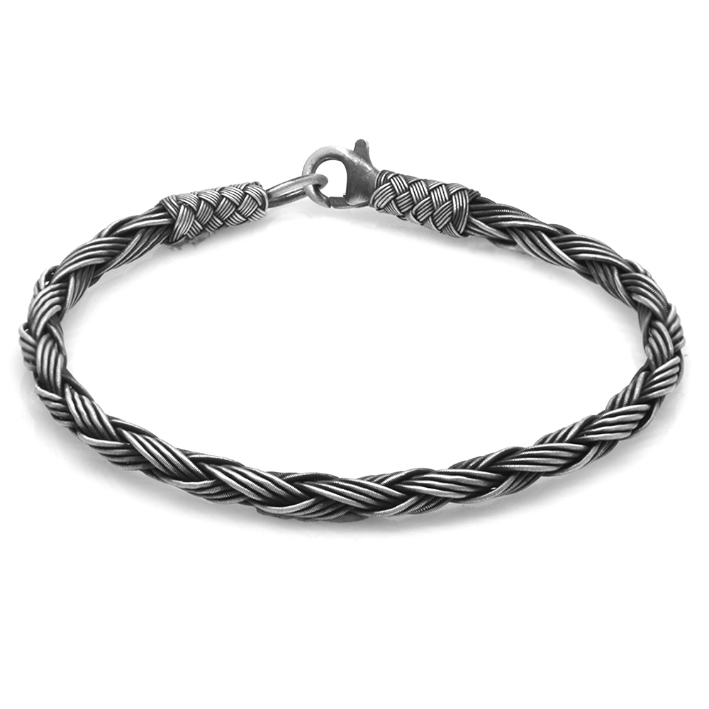 El İşçiliği 4 lü Örgü Tasarım 1000 Ayar Gümüş Kazaz Kadın Bileklik