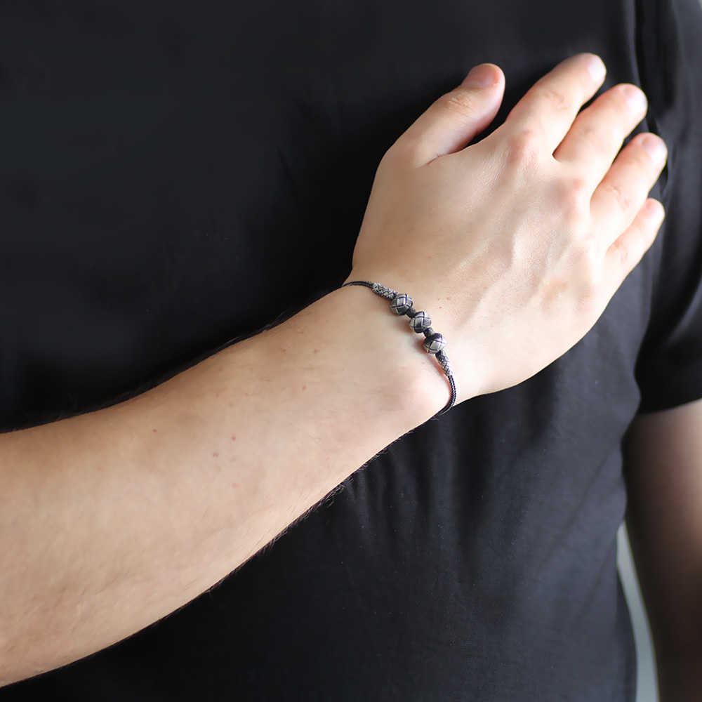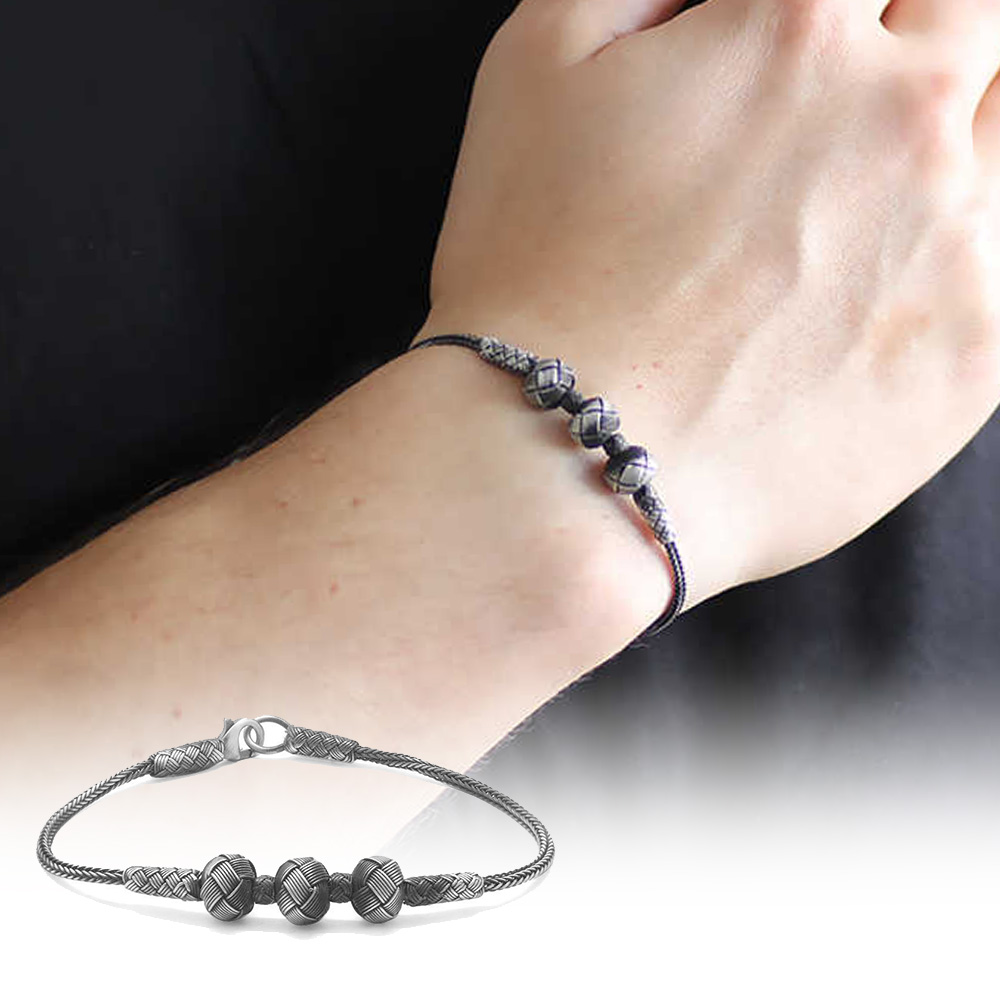 El İşçiliği Sıralı Küre Tasarım 1000 Ayar Gümüş Kazaz Bileklik