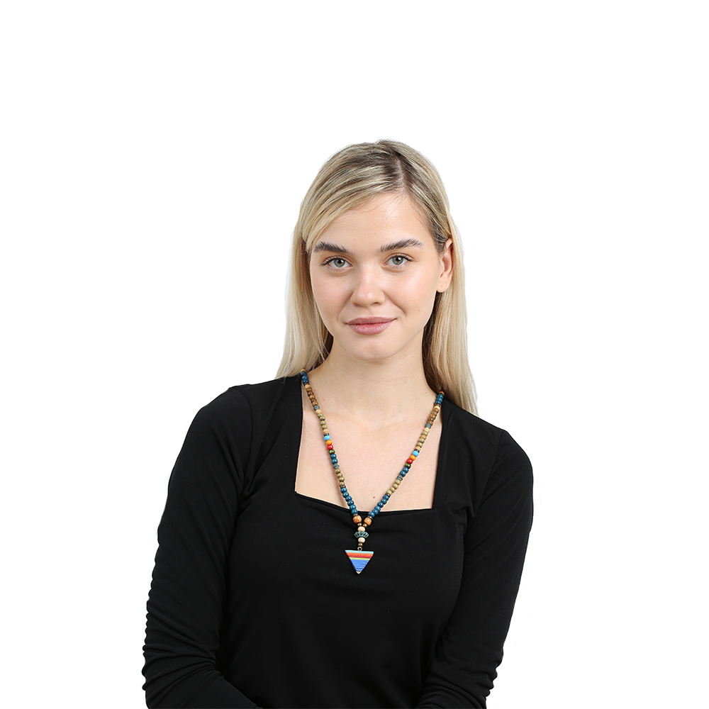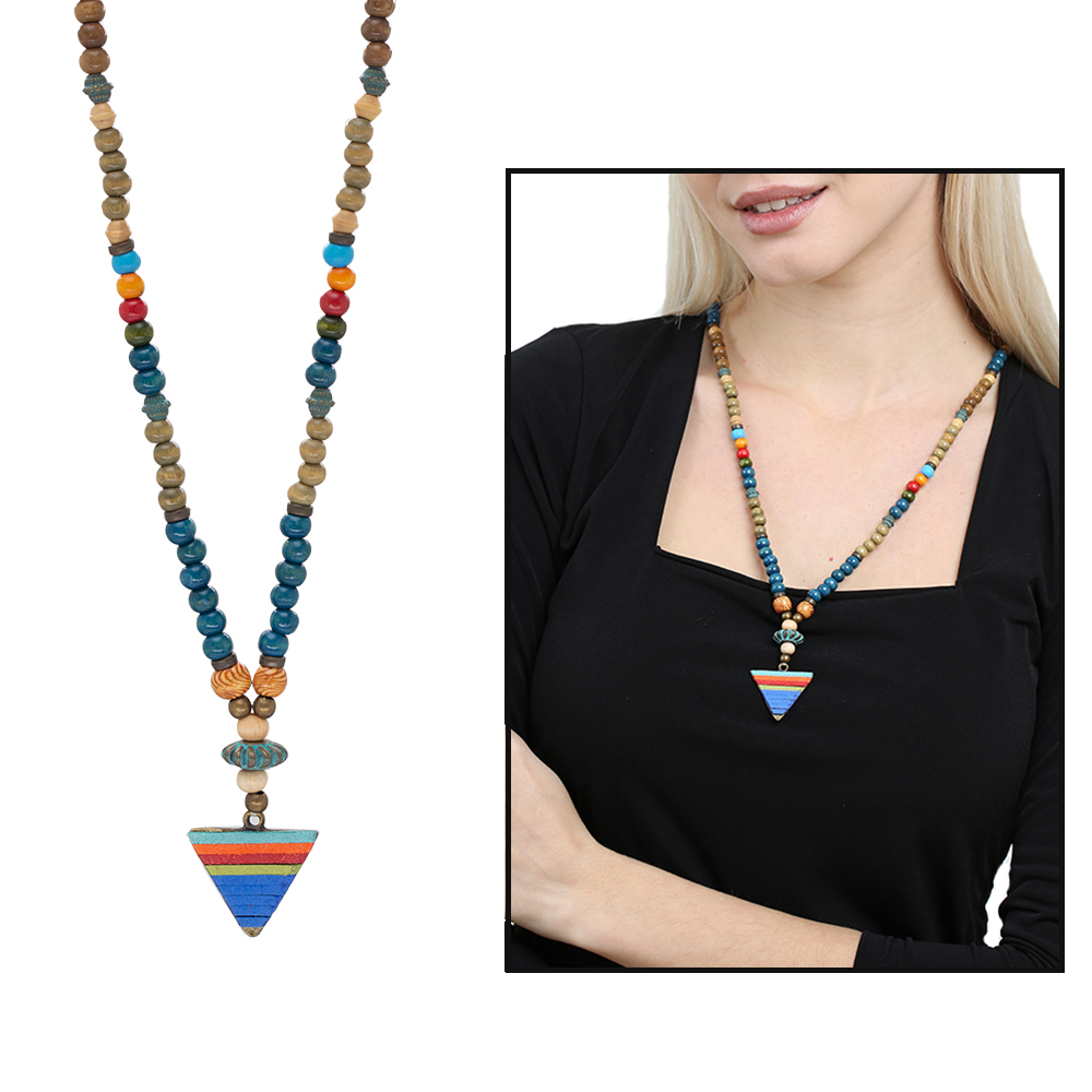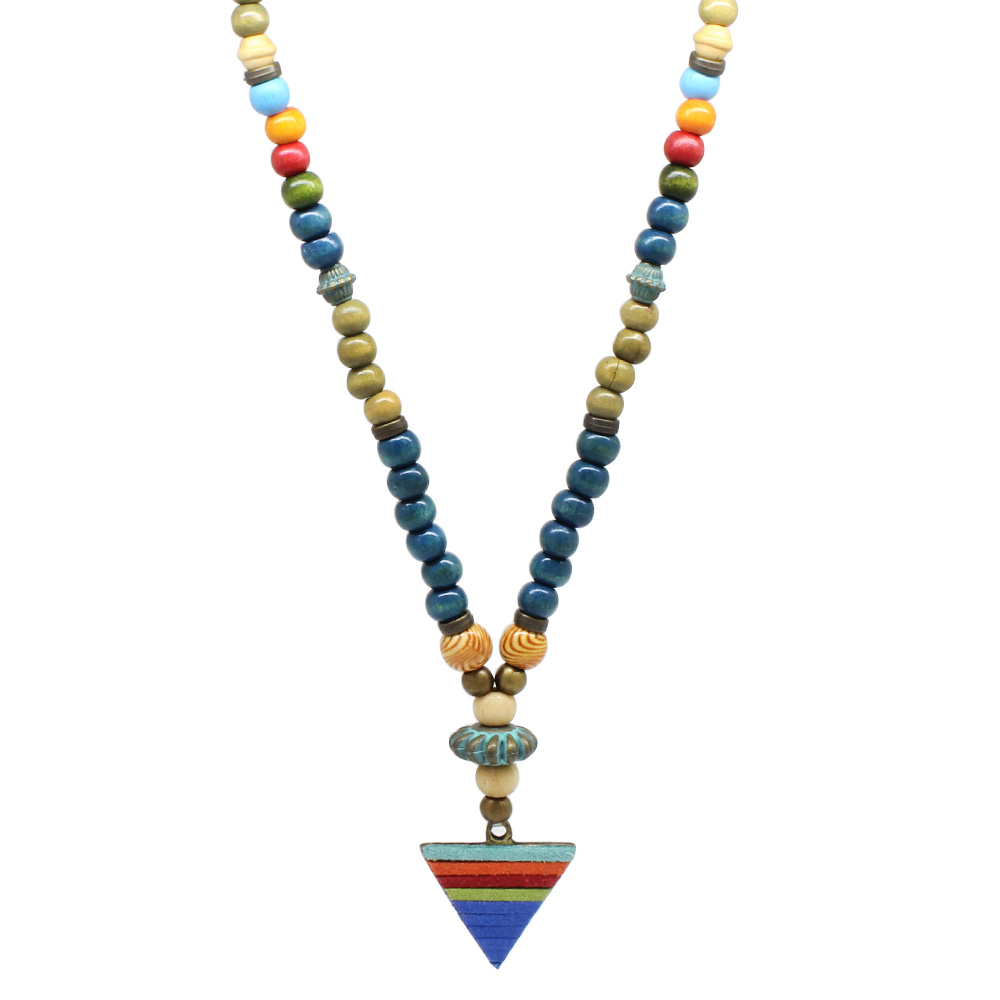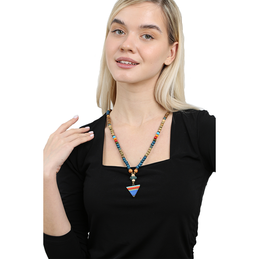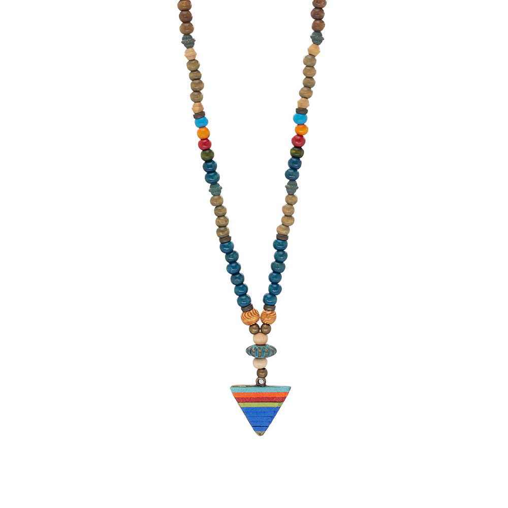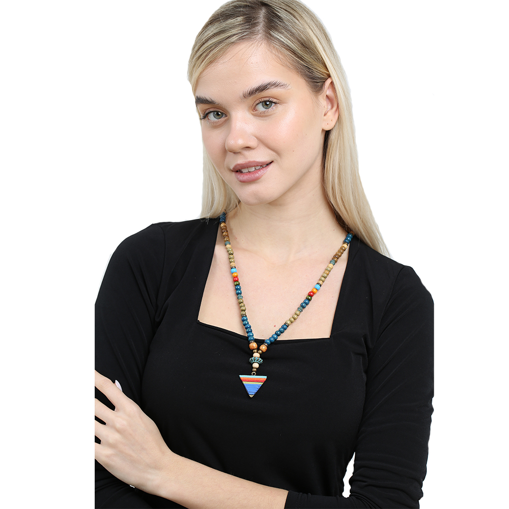El Yapımı Etnik Ahşap Kombinli Mavi Renk Geçişli Mızrak Uçlu Otantik Kolye