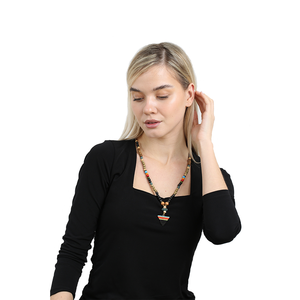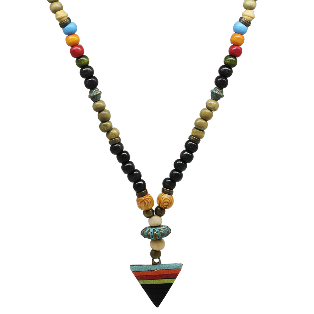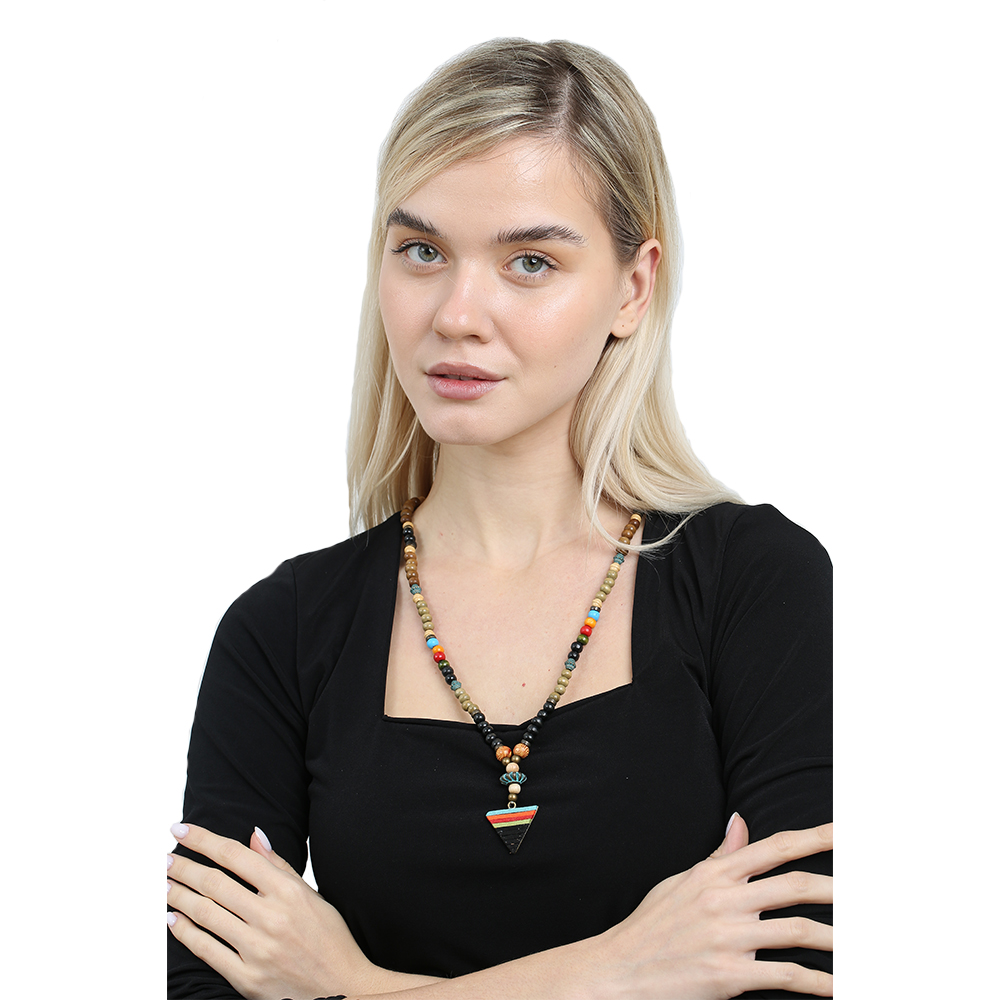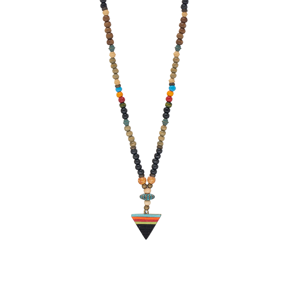 El Yapımı Etnik Ahşap Kombinli Siyah Renk Geçişli Mızrak Uçlu Otantik Kolye