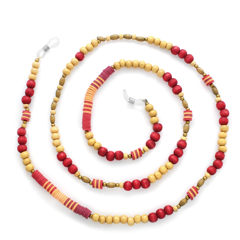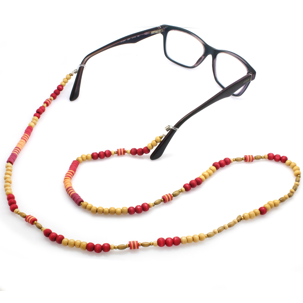 El Yapımı Kırmızı Renk Geçişli Etnik Ahşap Kombinli Otantik Gözlük Askısı