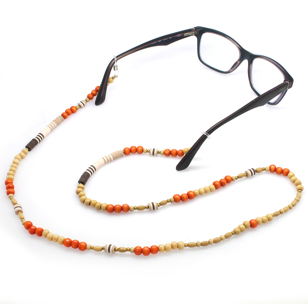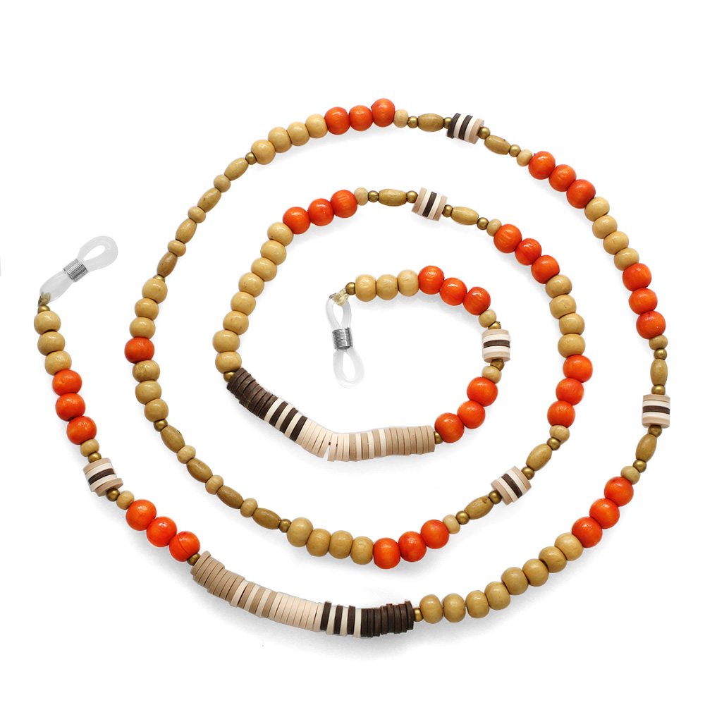 El Yapımı Turuncu Renk Geçişli Etnik Ahşap Kombinli Otantik Gözlük Askısı