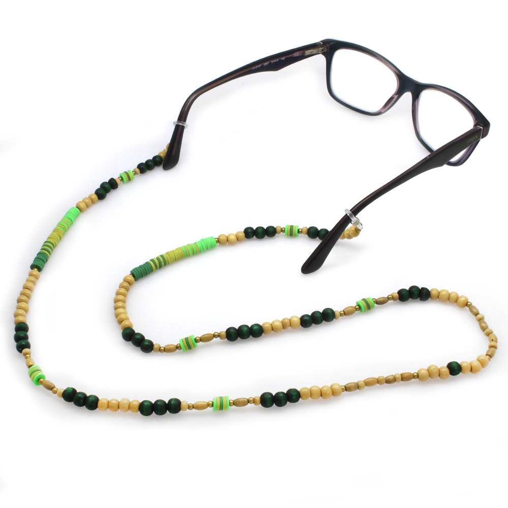 El Yapımı Yeşil Renk Geçişli Etnik Ahşap Kombinli Otantik Gözlük Askısı