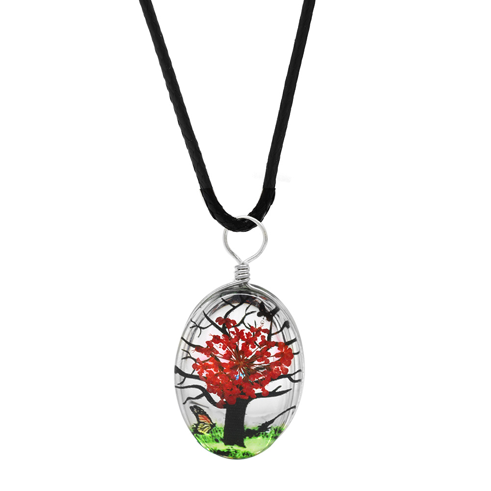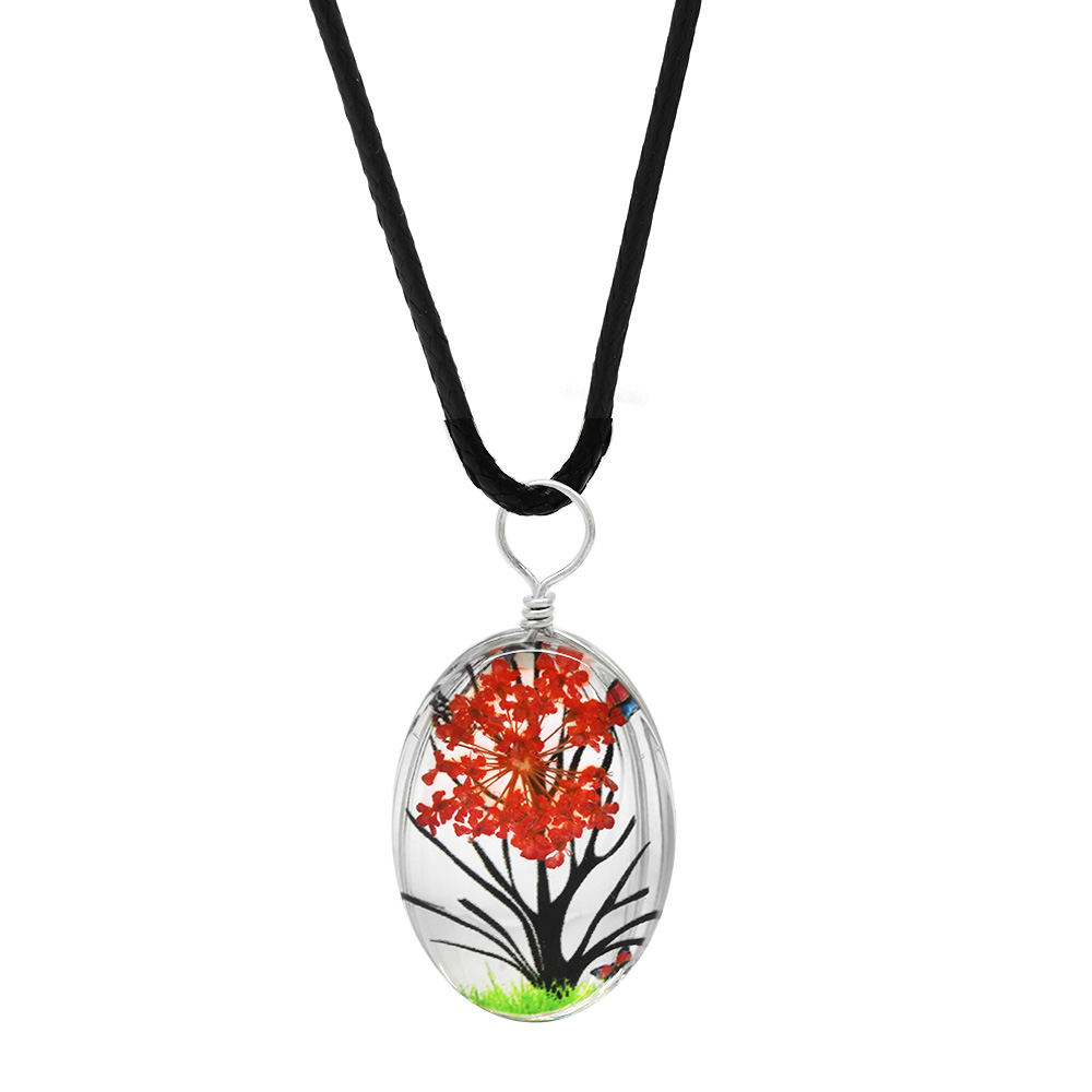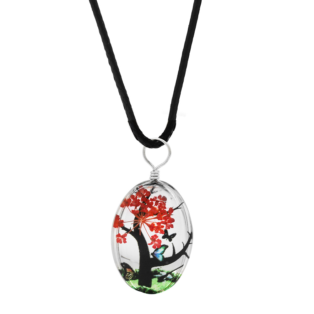 Elips Tasarım Kırmızı Çiçekli Doğa Temalı El Yapımı Natural Reçine Kolye