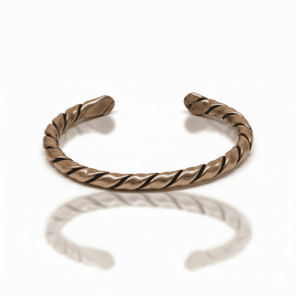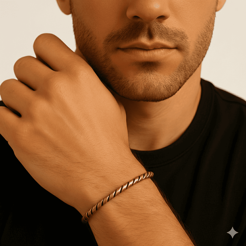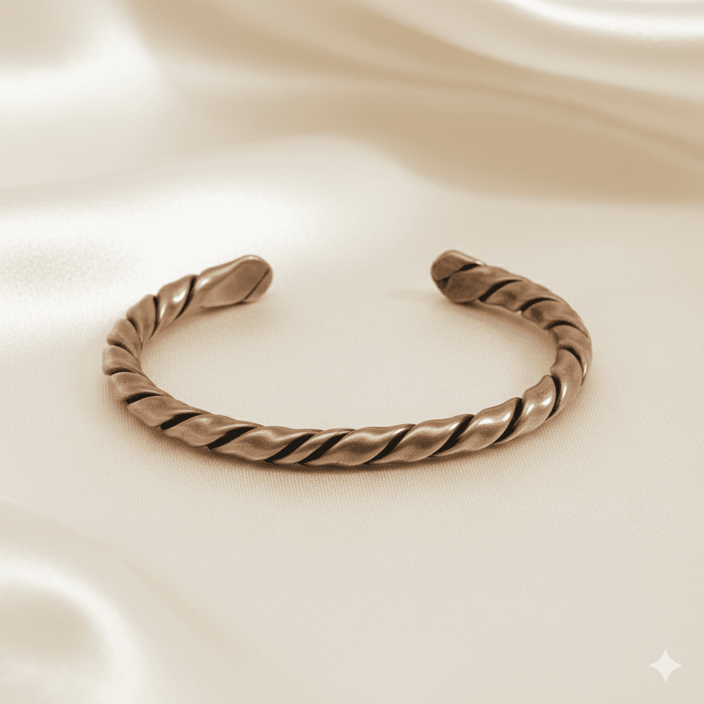 Erkek Bakır Bileklik - Otantik Oval Burma Tasarım - Ayarlanabilir Yapı