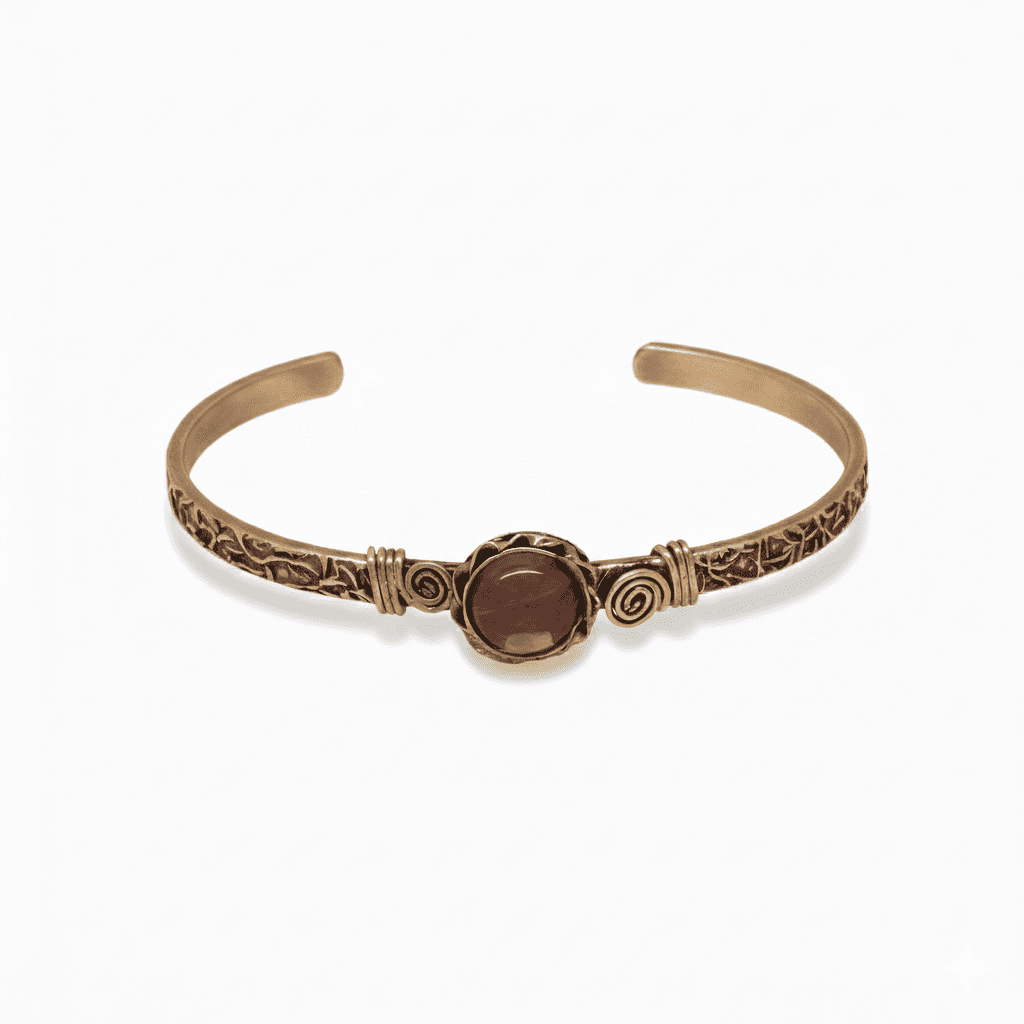 Erkek Bakır Bileklik - Pembe Kuvars Doğaltaşlı - Otantik Tasarım - Ayarlanabilir Yapı