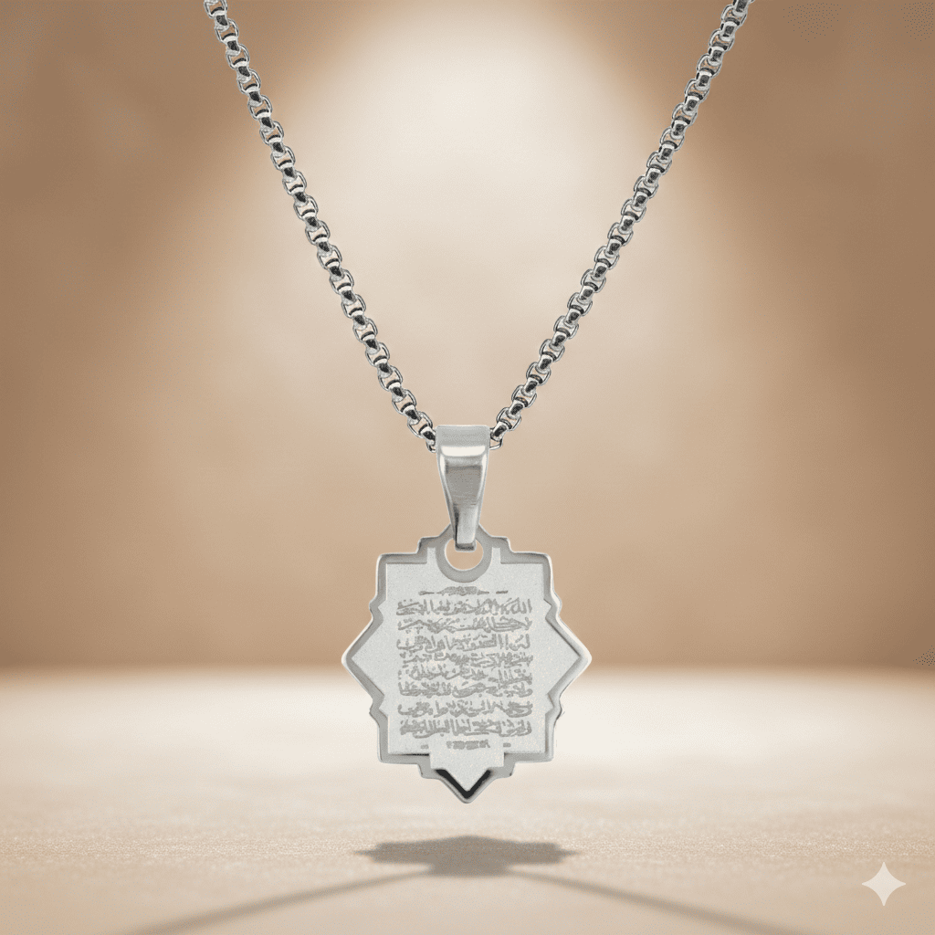 Ayetel Kürsi'nin Gücü Yanınızda: Kuran-ı Kerim'in kalbi olarak kabul edilen Ayetel Kürsi, Allah'ın (c.c.) en büyük isimlerinden birini içerir. Bu özel kolyemiz ile, Allah'ın korumasını her an yanınızda hissedin. Kötü nazarlardan, negatif enerjilerden ve belalardan korunmak için Ayetel Kürsi'nin güçlü enerjisinden faydalanın. Ayetel Kürsi'yi taşımak, Allah'ın (c.c.) rahmetine daha yakın olmanızı sağlar. Bu özel kolyemiz ile, hem dünya hayatında hem de ahirette Allah'ın koruması altında hissedin.