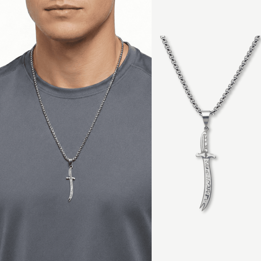 İmanın ve Adaletin Kılıcı: Zülfikar'ın Gücüİslam tarihindeki en önemli sembollerden biri olan Zülfikar, Hz. Ali'ye ait olduğu düşünülen ve adalet, cesaret ve imanın simgesi olarak kabul edilen efsanevi bir kılıçtır. Bu kutsal sembolü, özel tasarımlarımızla takı ve aksesuarlara taşıyarak, tarih boyunca süregelen bir mirası günümüze taşıyoruz.Lazer kesim tekniğiyle özenle işlenmiş Zülfikar figürleri, gümüşün ışıltısıyla birleşerek hem estetik bir görünüm sunuyor hem de taşıyanın ruhuna hitap ediyor. Her bir parça, İslam tarihine olan saygımızı ve inançlarımızı yansıtıyor.Zülfikar temalı ürünlerimiz, sadece bir aksesuar değil, aynı zamanda bir inanç ifadesidir. İmanın gücünü ve adaletin önemini hatırlatan bu özel tasarımlar, taşıyanına güç ve ilham verir. Türkler ve Zülfikar:Türkler, tarih boyunca İslam medeniyetine önemli katkılar sağlamış ve İslam'ın temel değerlerine bağlı bir millet olmuştur. Zülfikar sembolü de Türk kültüründe önemli bir yere sahiptir. Özellikle Alevi-Bektaşi kültüründe Zülfikar, Hz. Ali ile özdeşleşmiş ve kutsal bir nesne olarak kabul edilmiştir.Zülfikar temalı kolyelerimiz, Türklerin İslam dünyasındaki yerini ve kültür mirasını yansıtmaktadır. Bu ürünlerle hem kendi inancınızı ifade edebilir hem de Türk-İslam kültürüne olan bağlılığınızı gösterebilirsiniz.