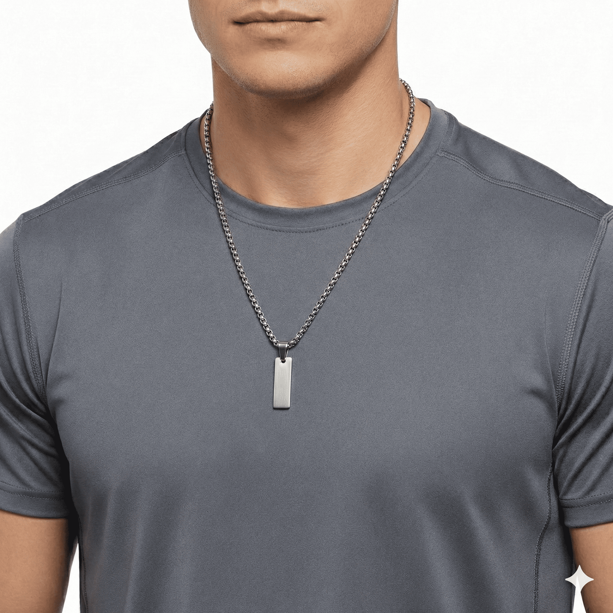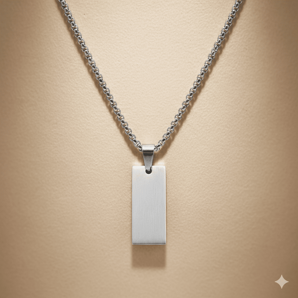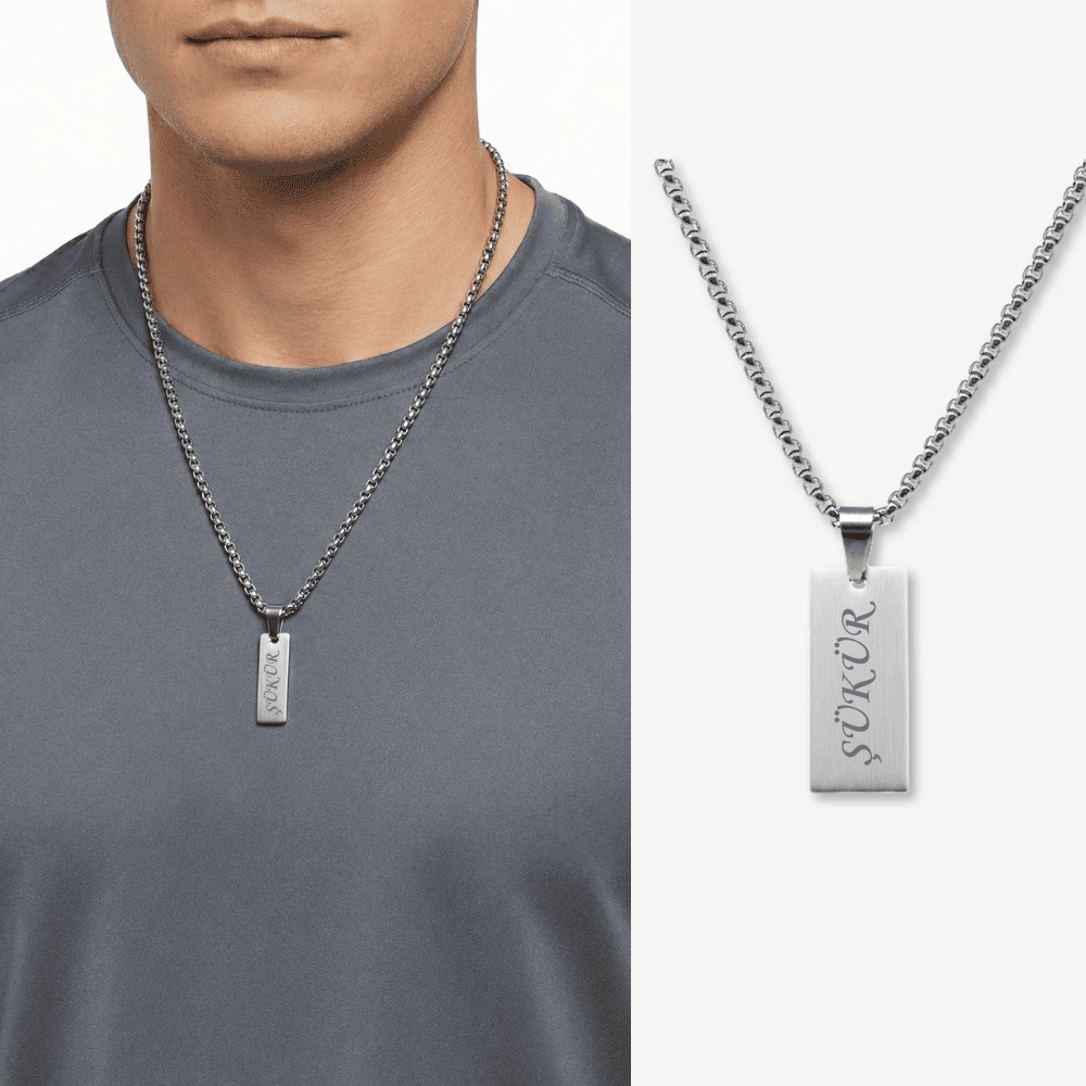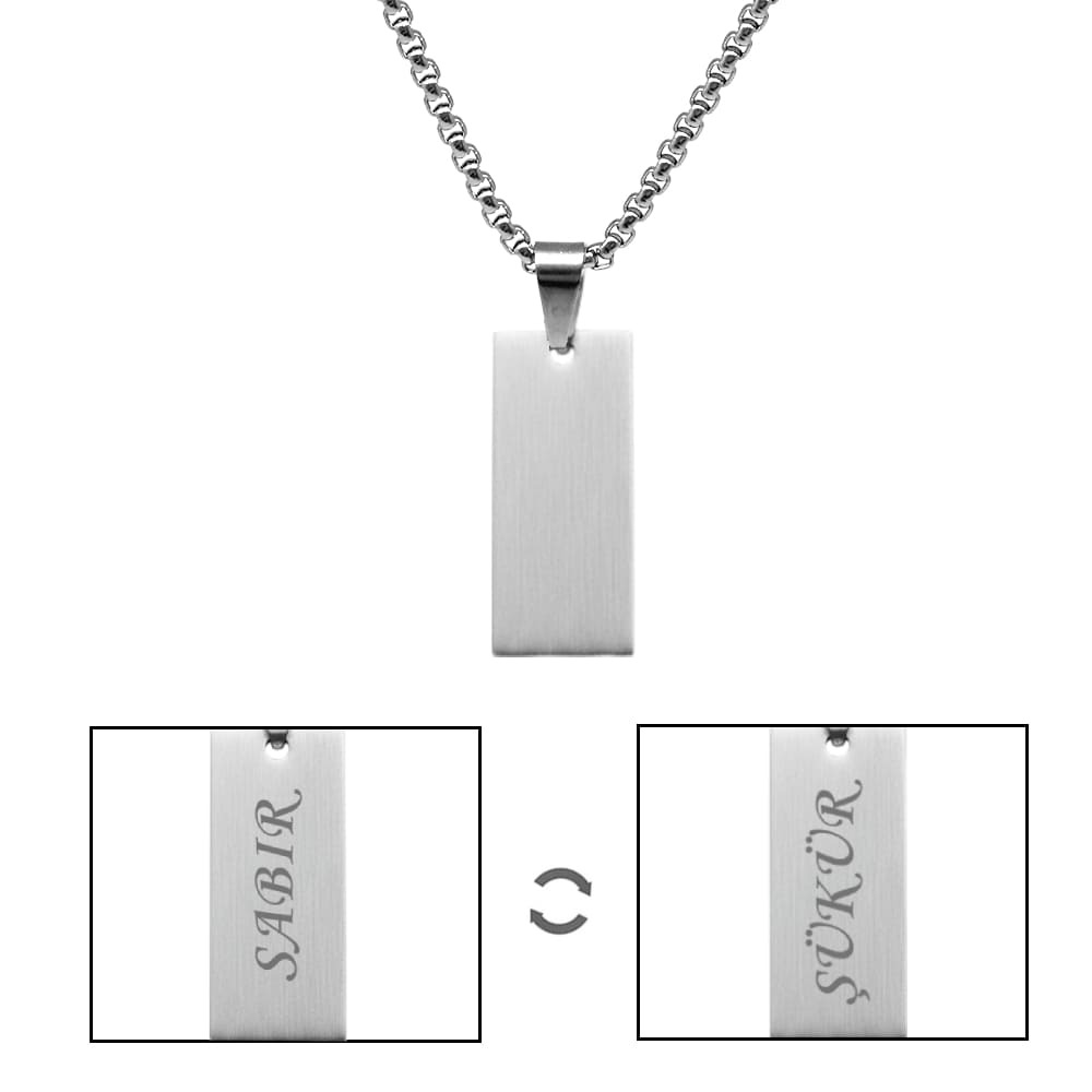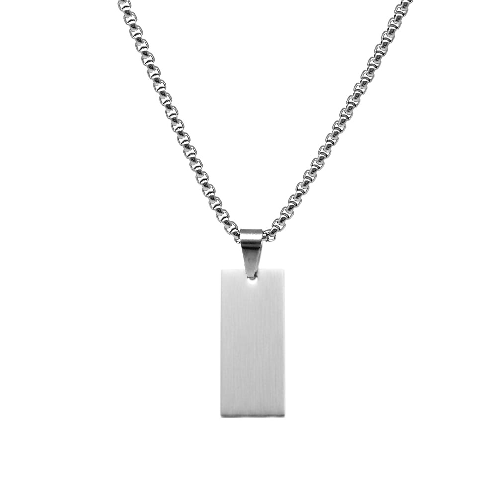 Erkek Çelik Kolye - Kişiye Özel - Gümüş Renk - Dikdörtgen Tasarım - 60 cm