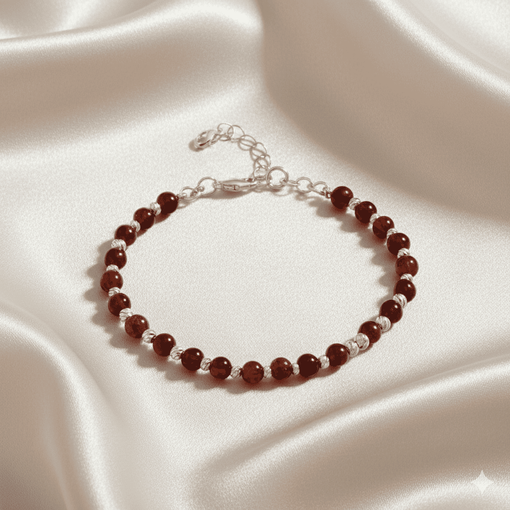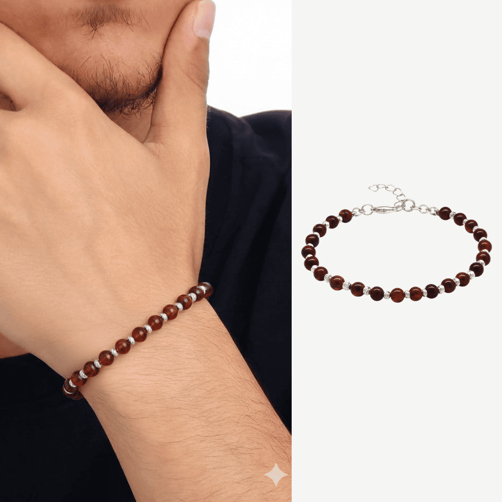 Erkek Doğal Damla Kehribar Bileklik - Kırmızı - Küre Kesim - Dorika Top Süslemeli - Çelik Zincirli