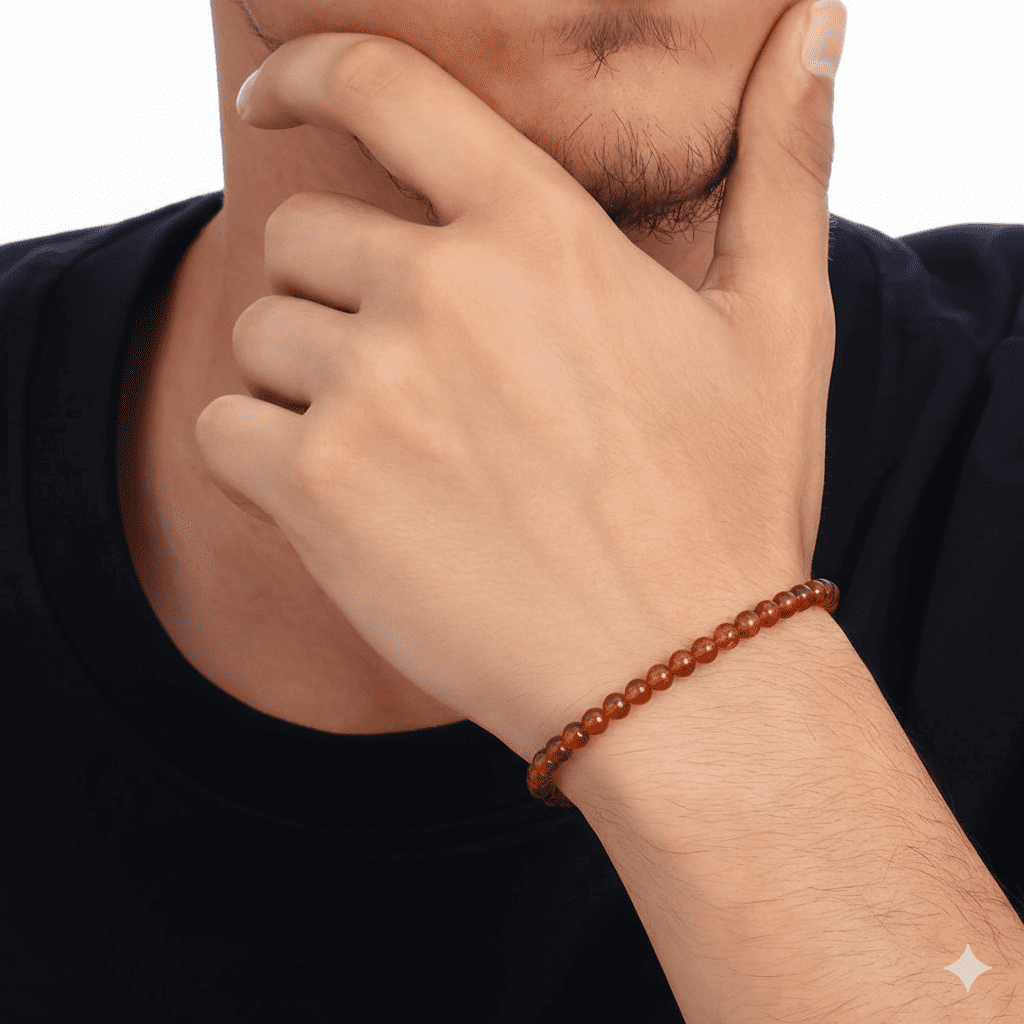 Erkek Doğal Damla Kehribar Bileklik - Küre Kesim - Bal Rengi - Çelik Zincirli
