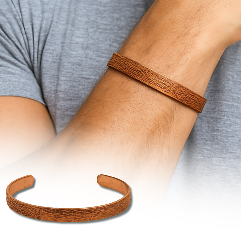 Erkek Bakır Bileklik - Dalga Desenli - Esnek Yapılı