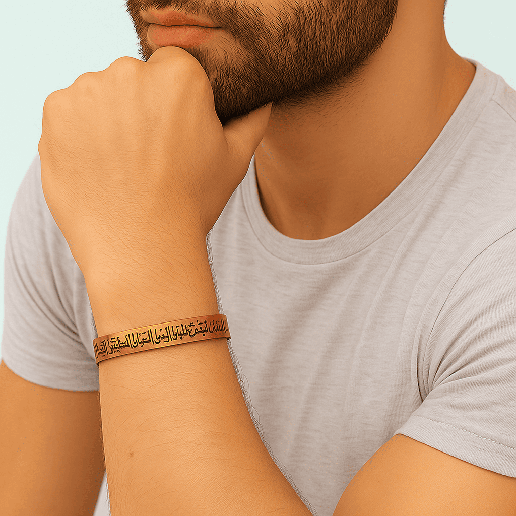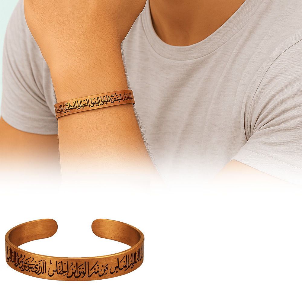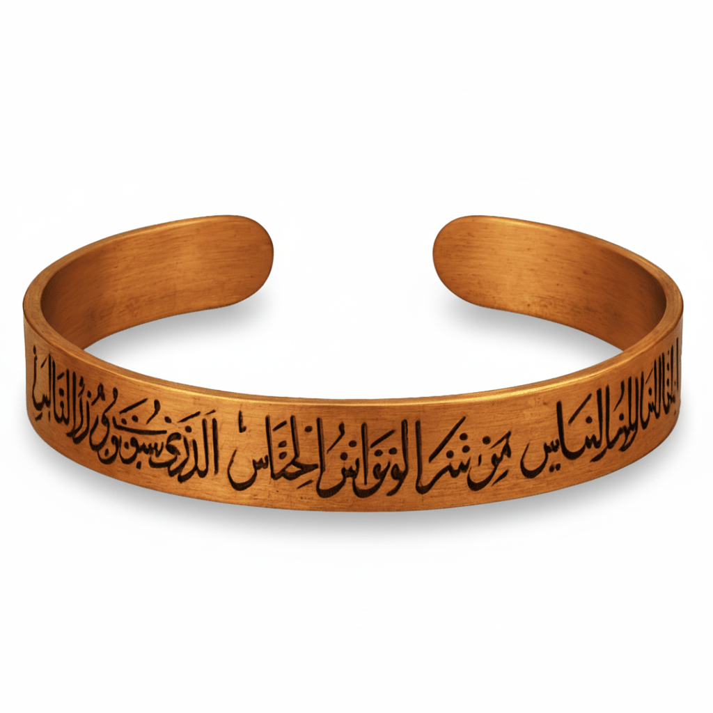 Erkek Bakır Bileklik - Üzeri Nas Suresi Yazılı - Esnek Yapılı