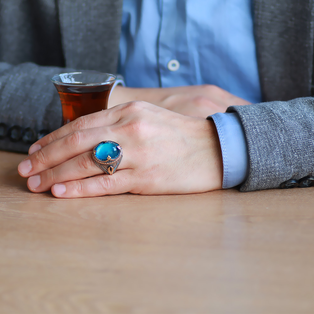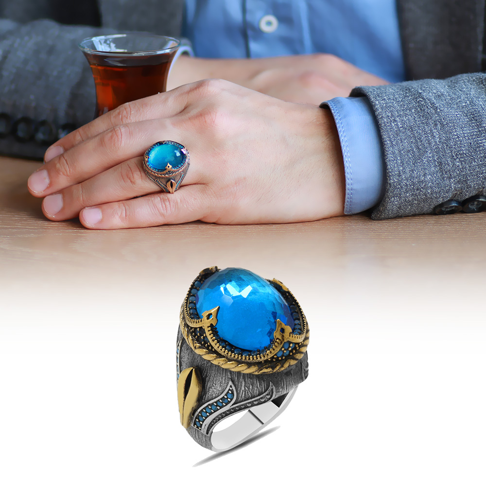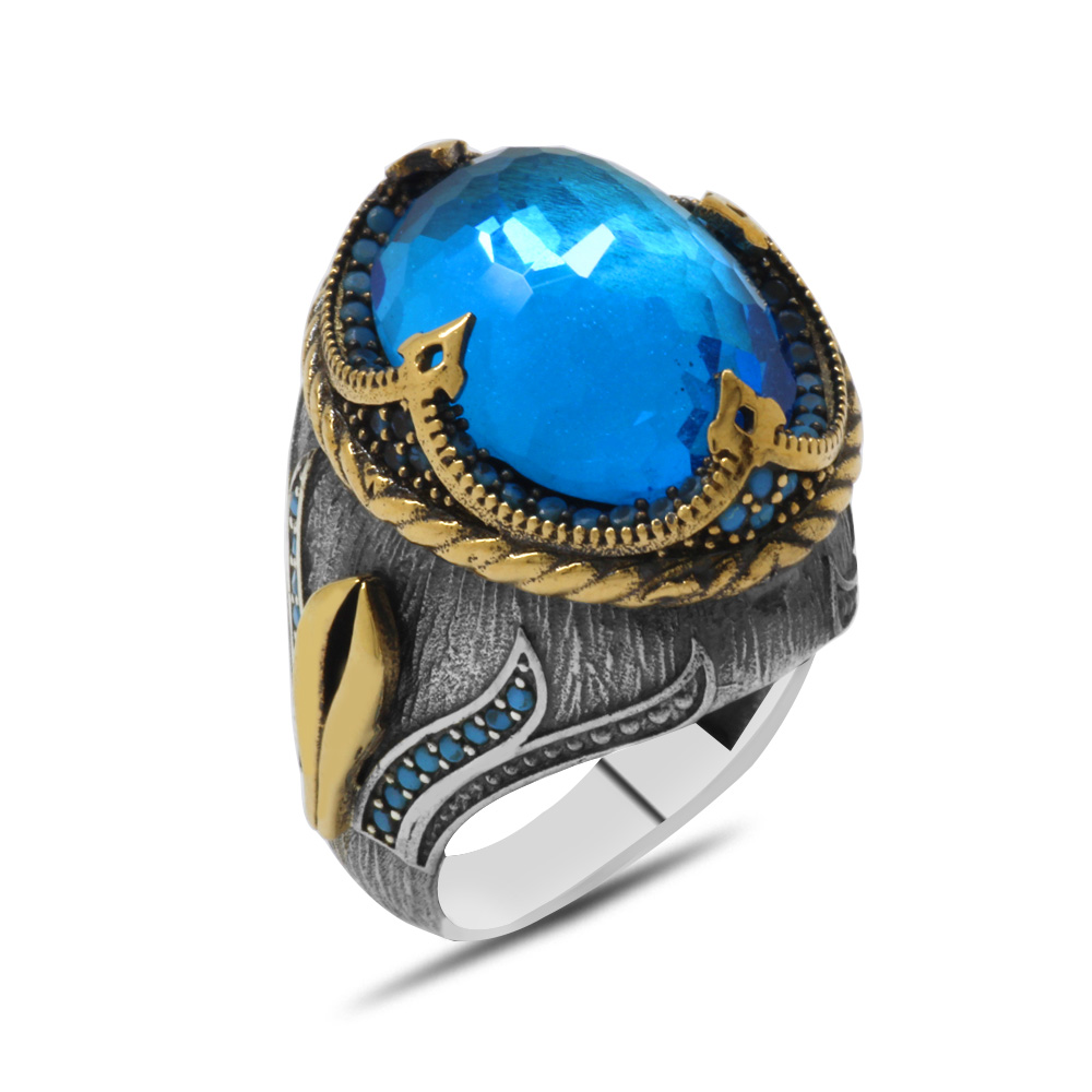 Faset Aqua Zirkon Taşlı Kompakt Tasarım 925 Ayar Gümüş Şehzade Yüzük