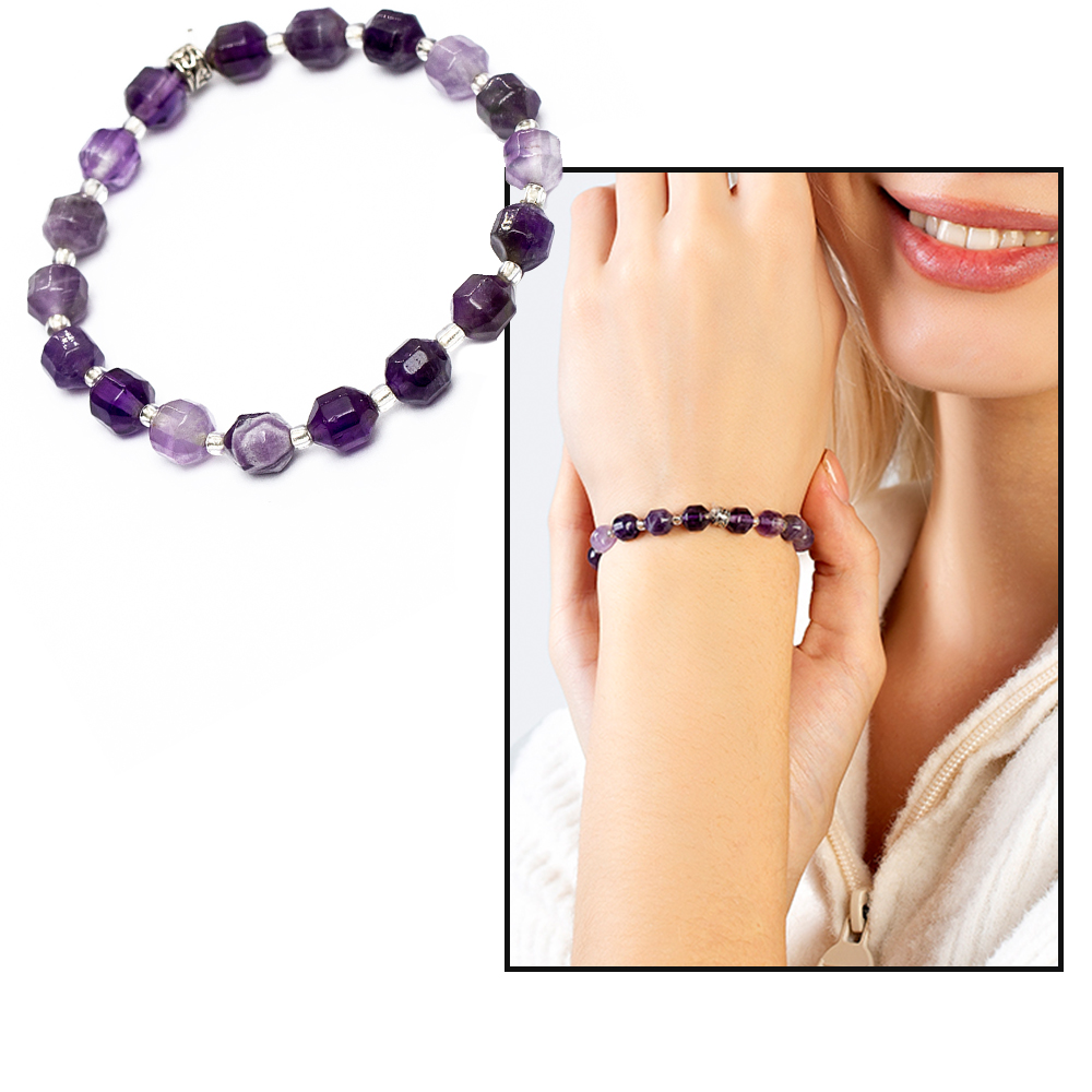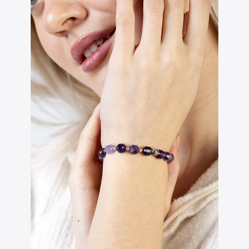 Faset Kesim Ametist Doğaltaş Kadın Bileklik - 1