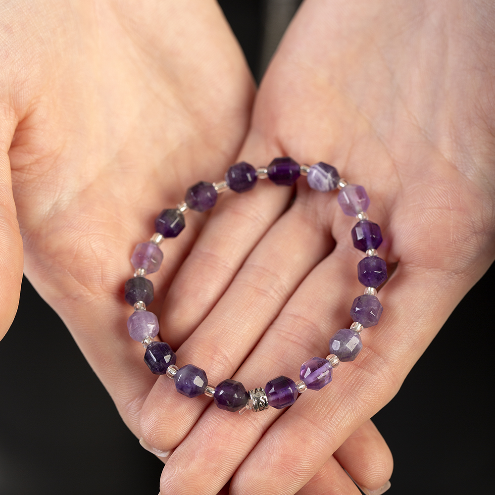 Faset Kesim Ametist Doğaltaş Kadın Bileklik
