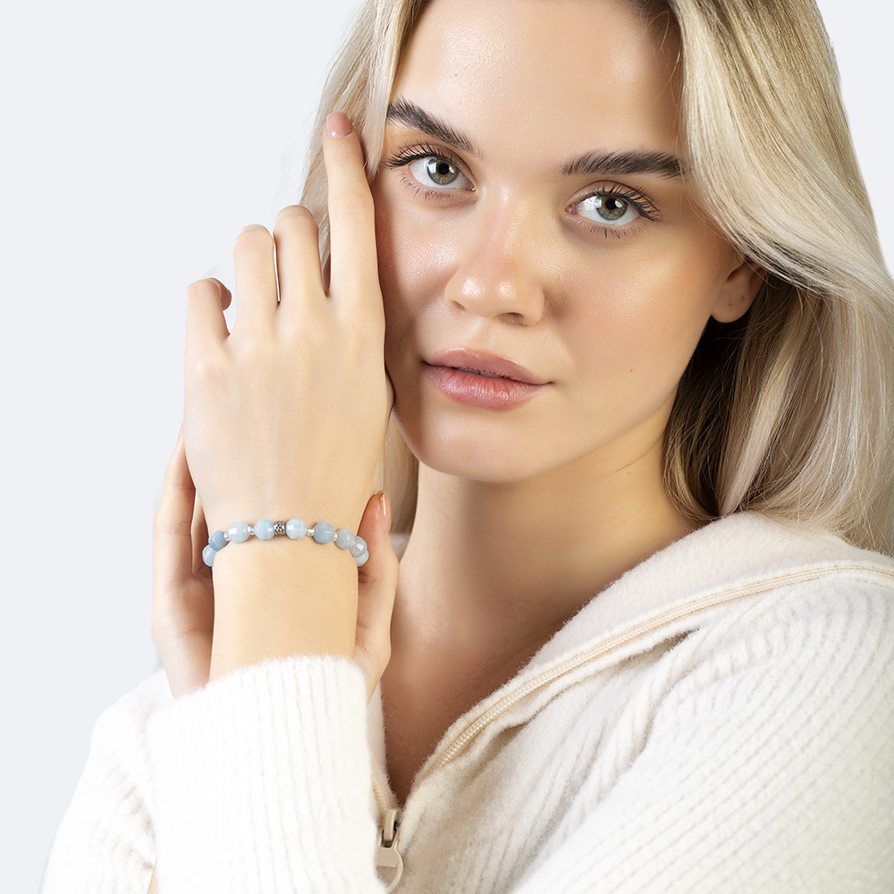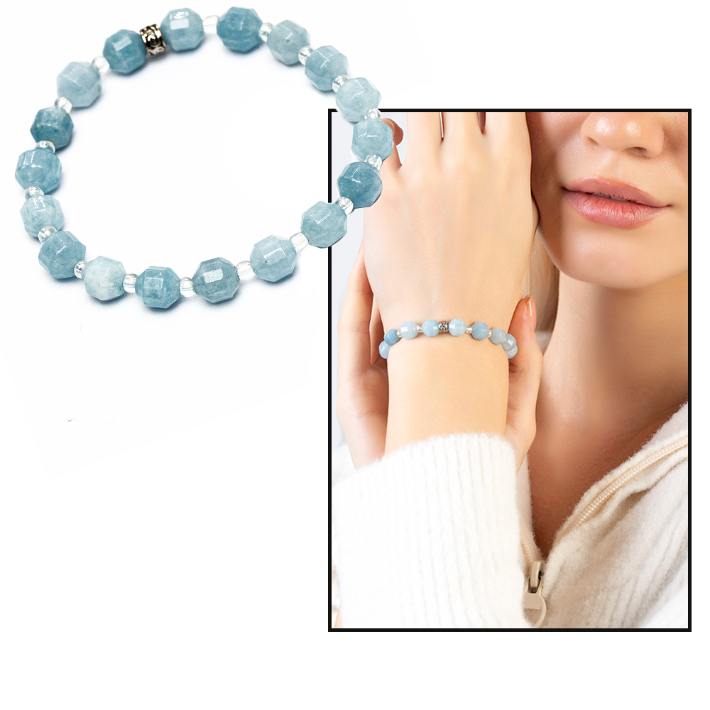 Faset Kesim Akuamarin Doğaltaş Kadın Bileklik - 1