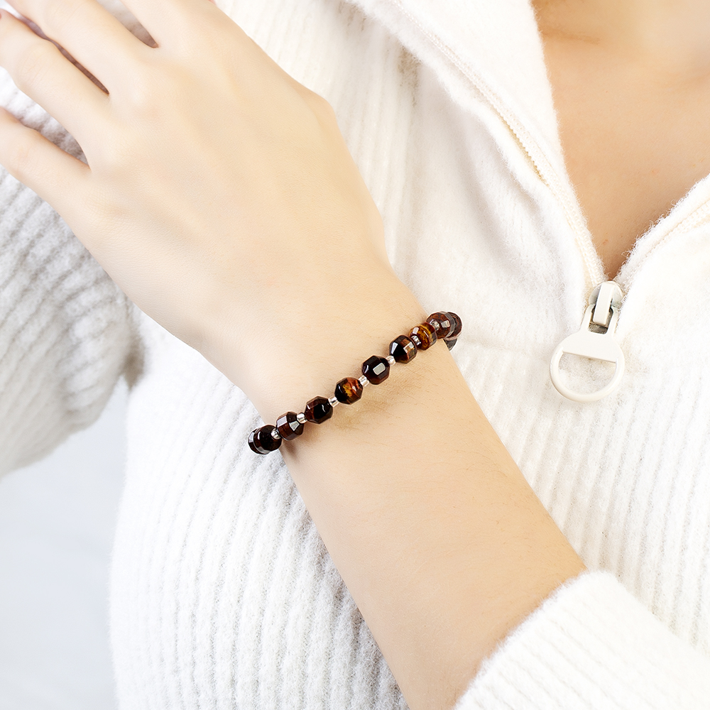 Faset Kesim Kaplan Gözü Doğaltaş Kadın Bileklik - 6