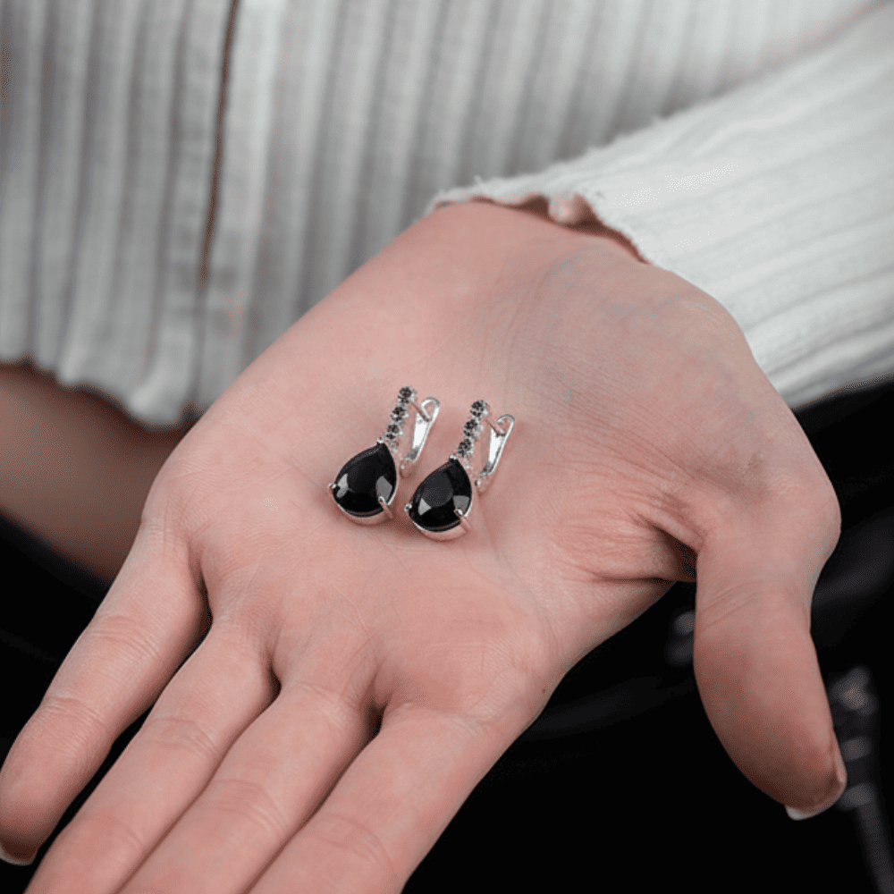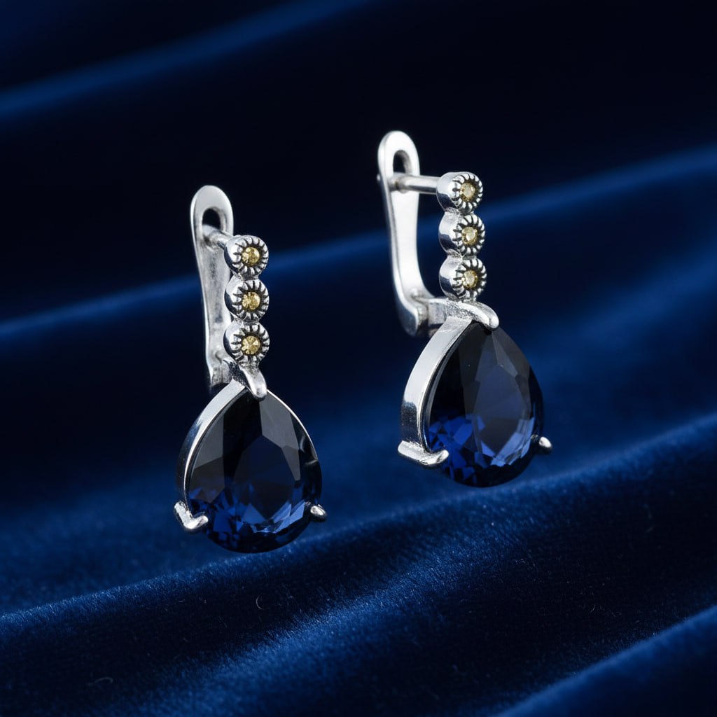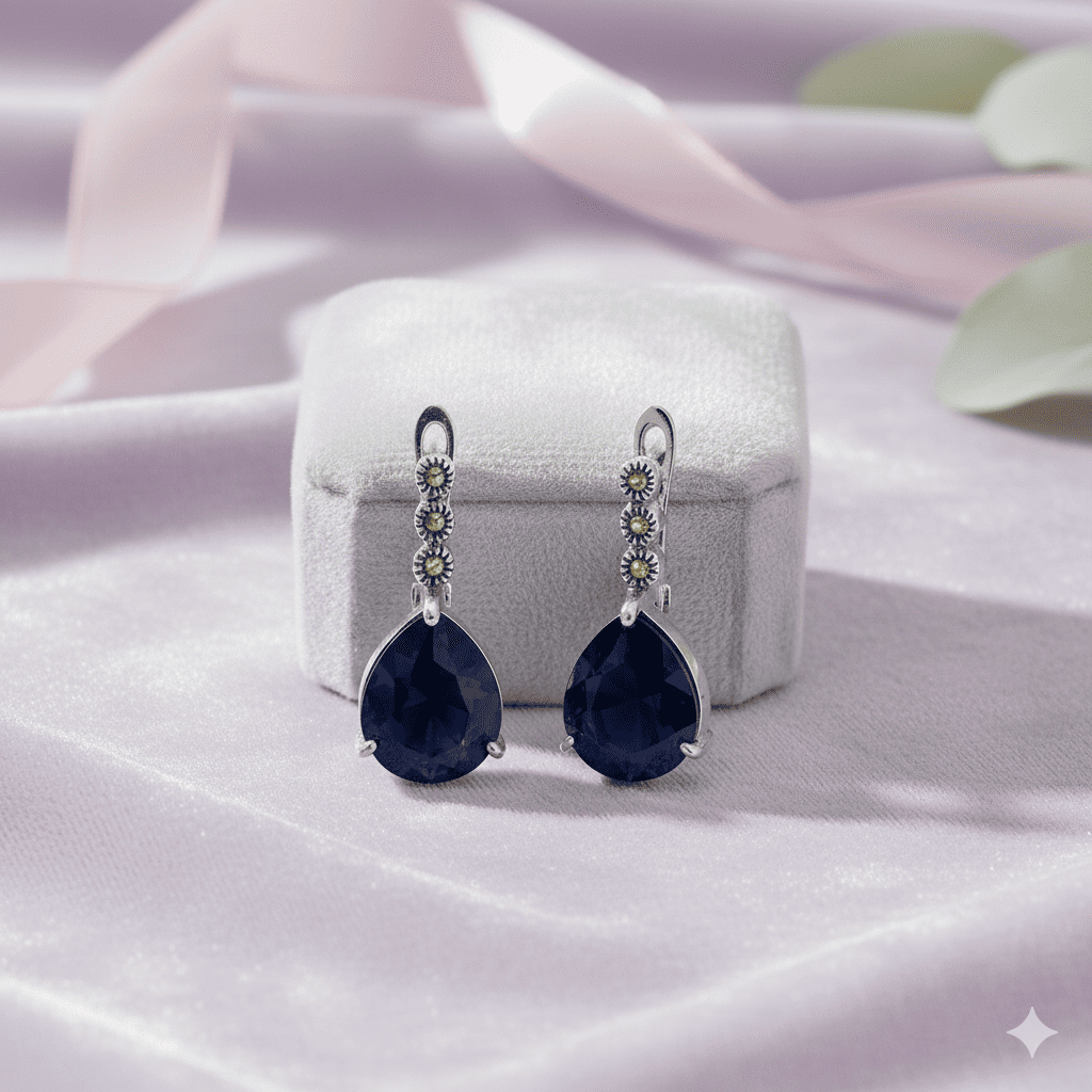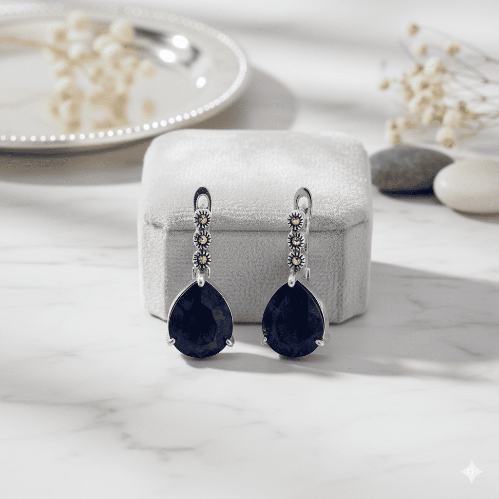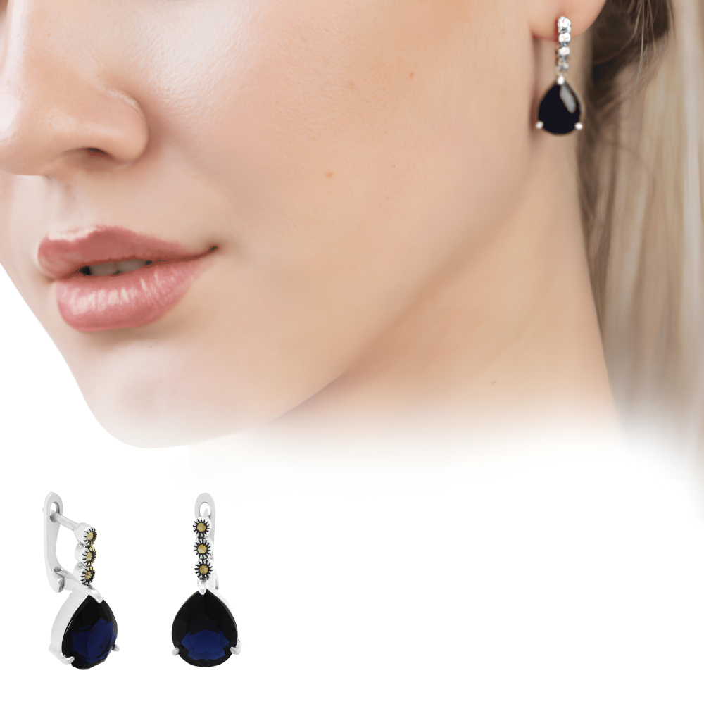 Faset Gece Mavi Zirkon Taşlı Damla Tasarım 925 Ayar Gümüş Kadın Küpe