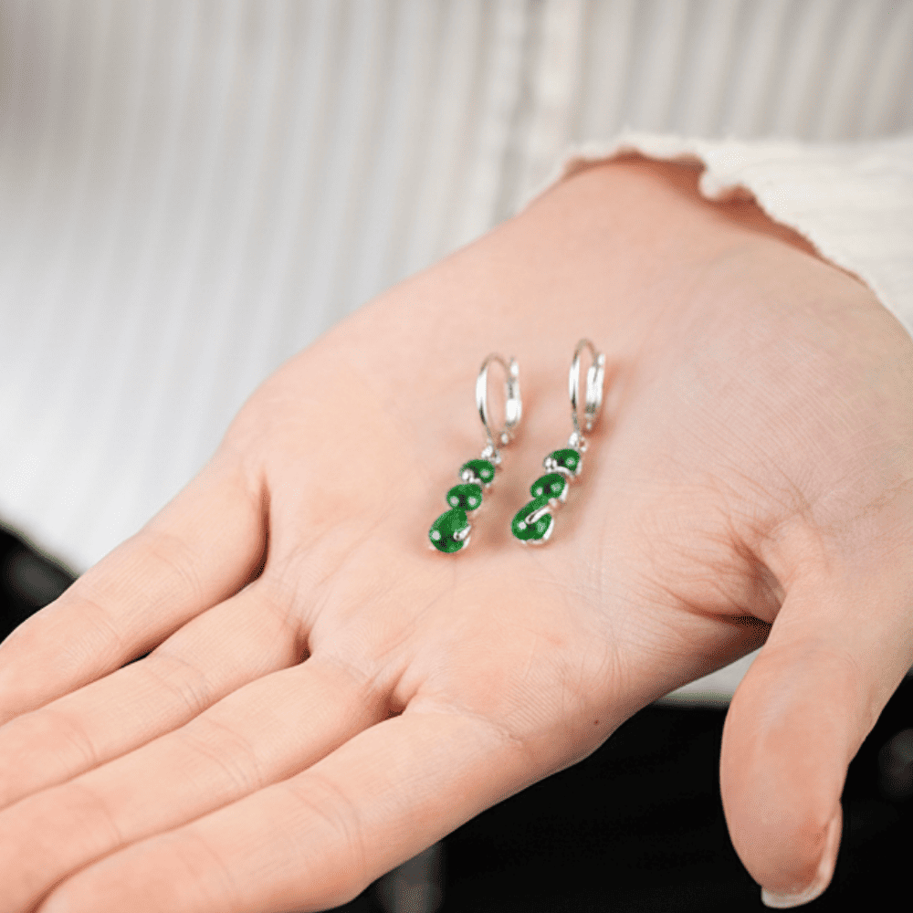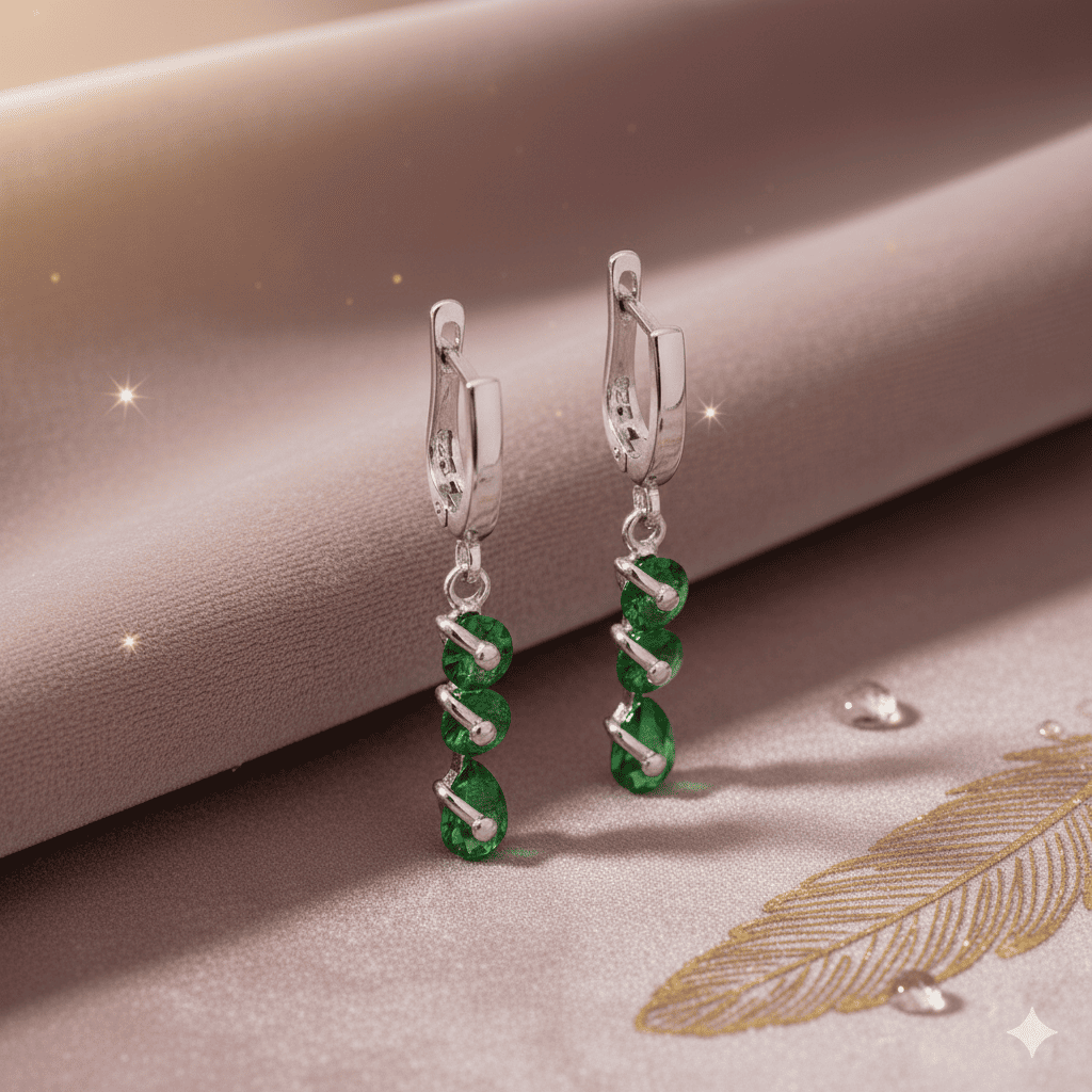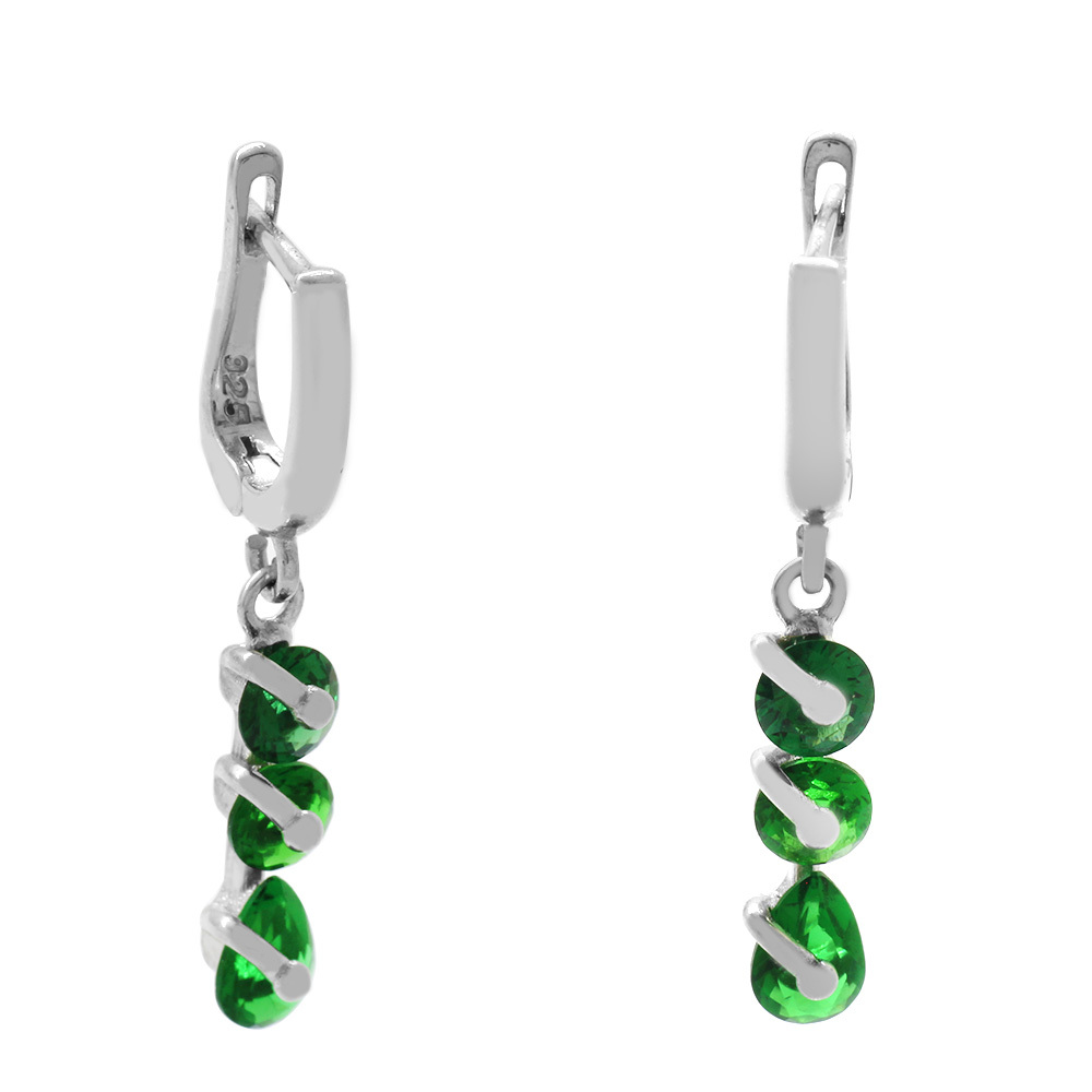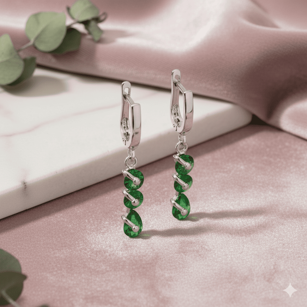 Faset Yeşil Zirkon Taşlı 3 lü Damla Tasarım 925 Ayar Gümüş Kadın Küpe