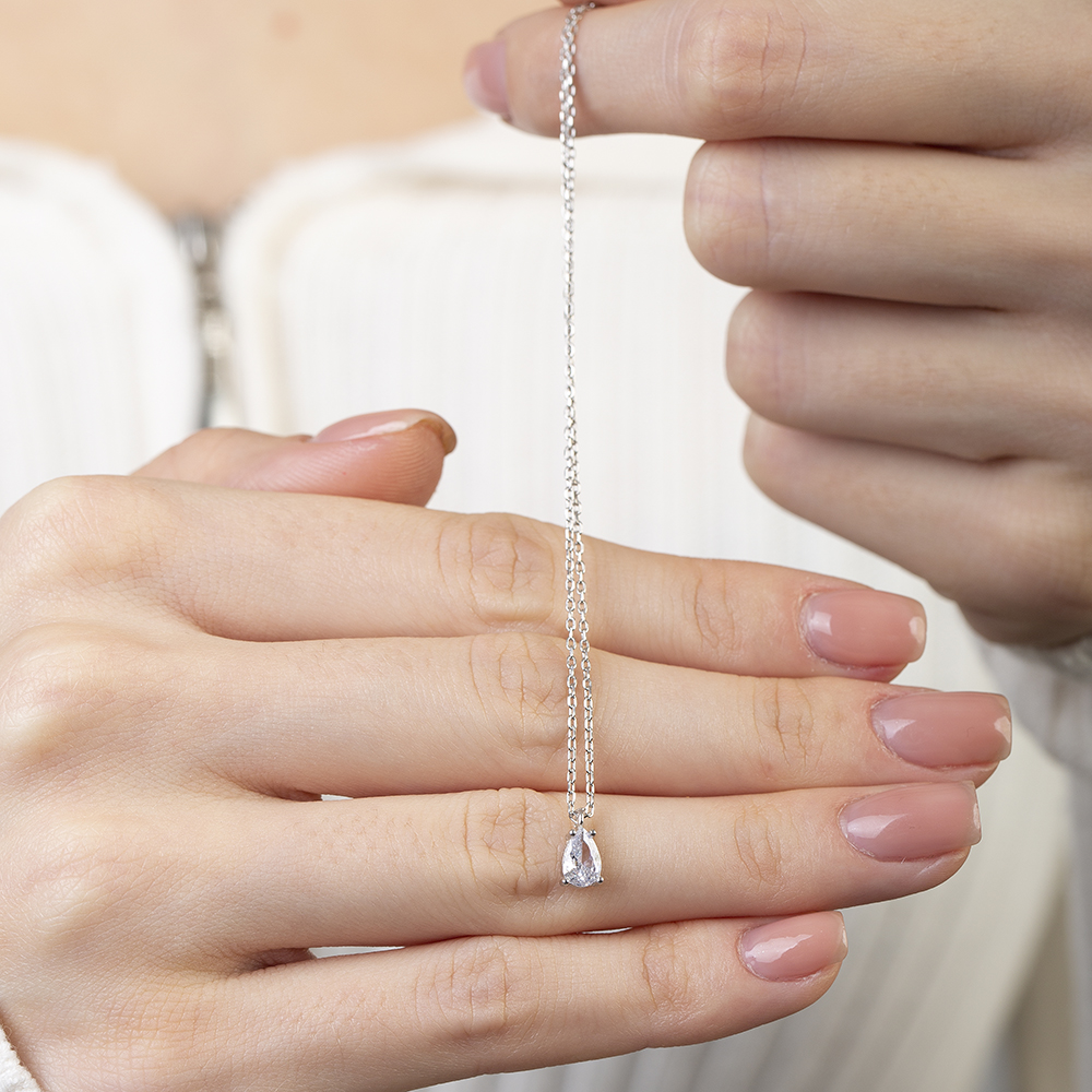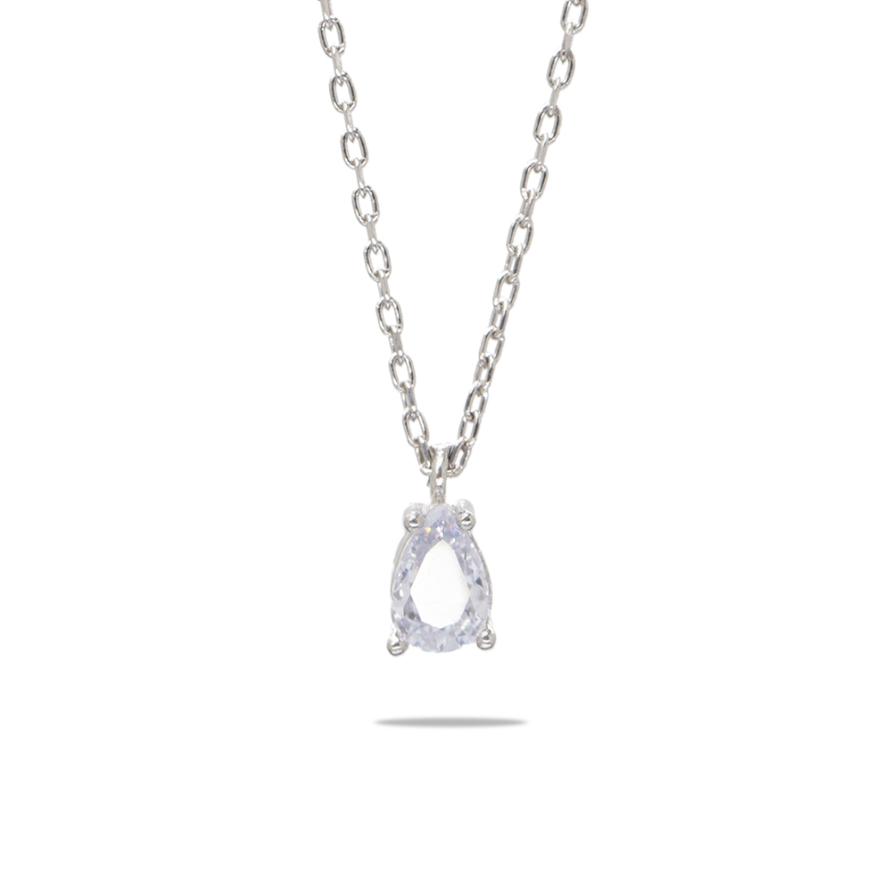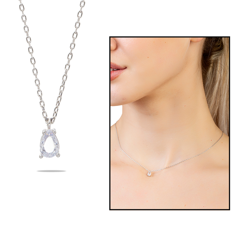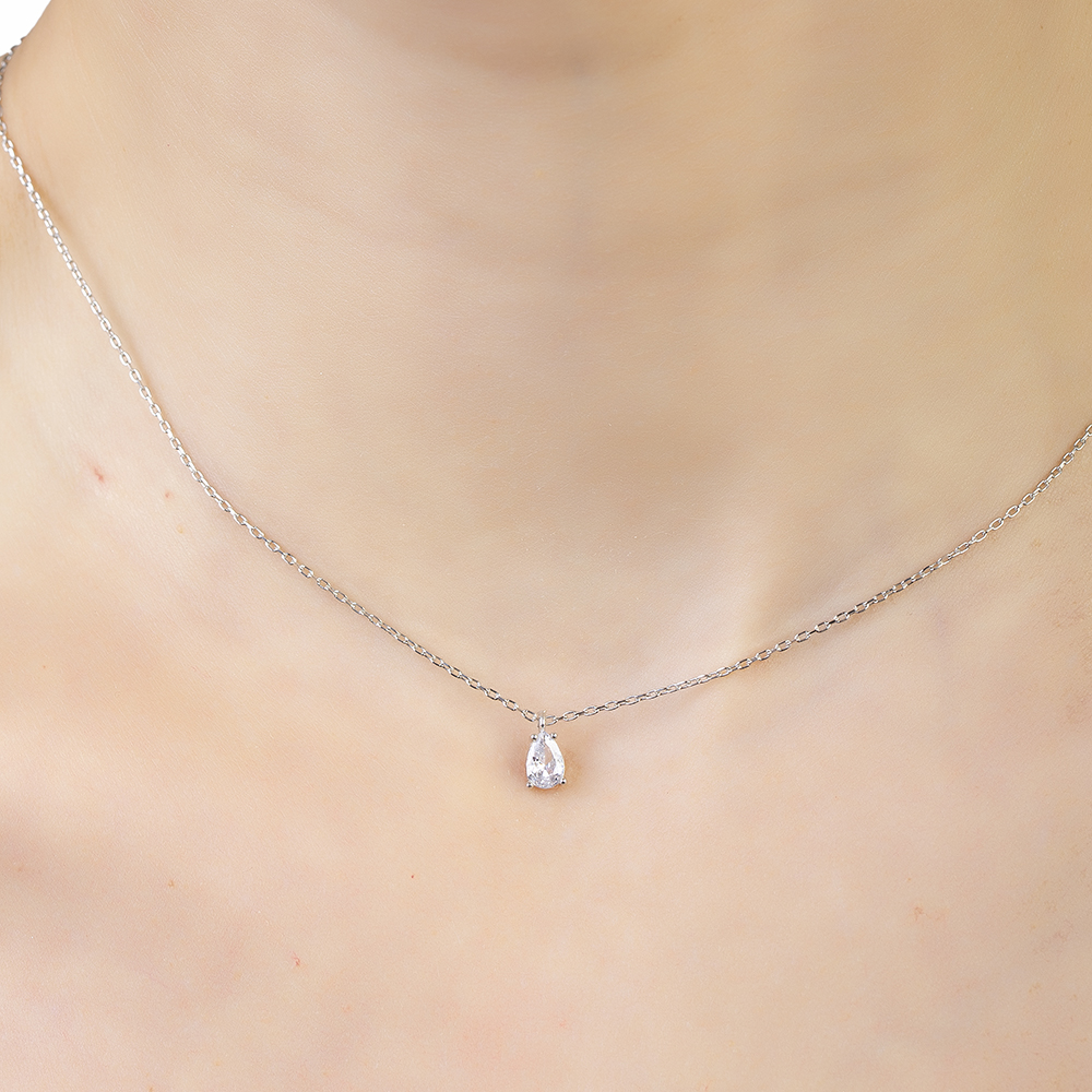 Faset Zirkon Tek Taşlı Gümüş Renk 925 Ayar Gümüş Kadın Kolye
