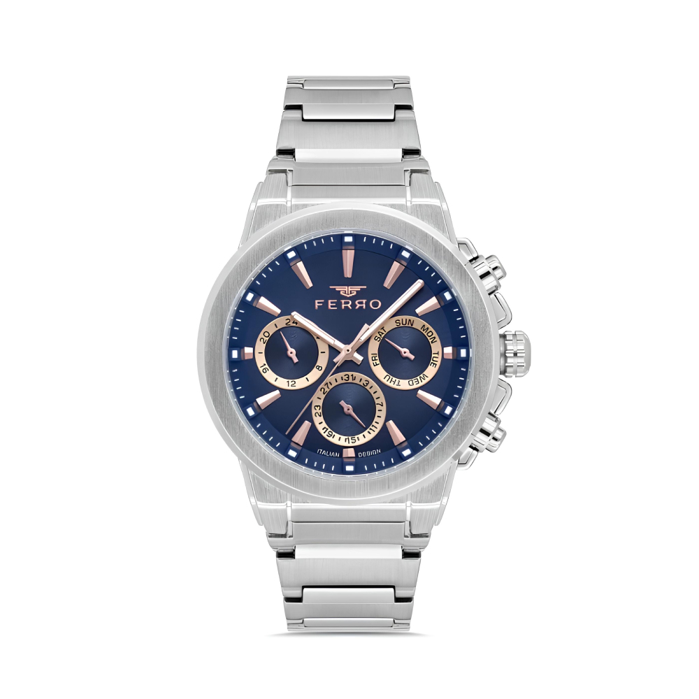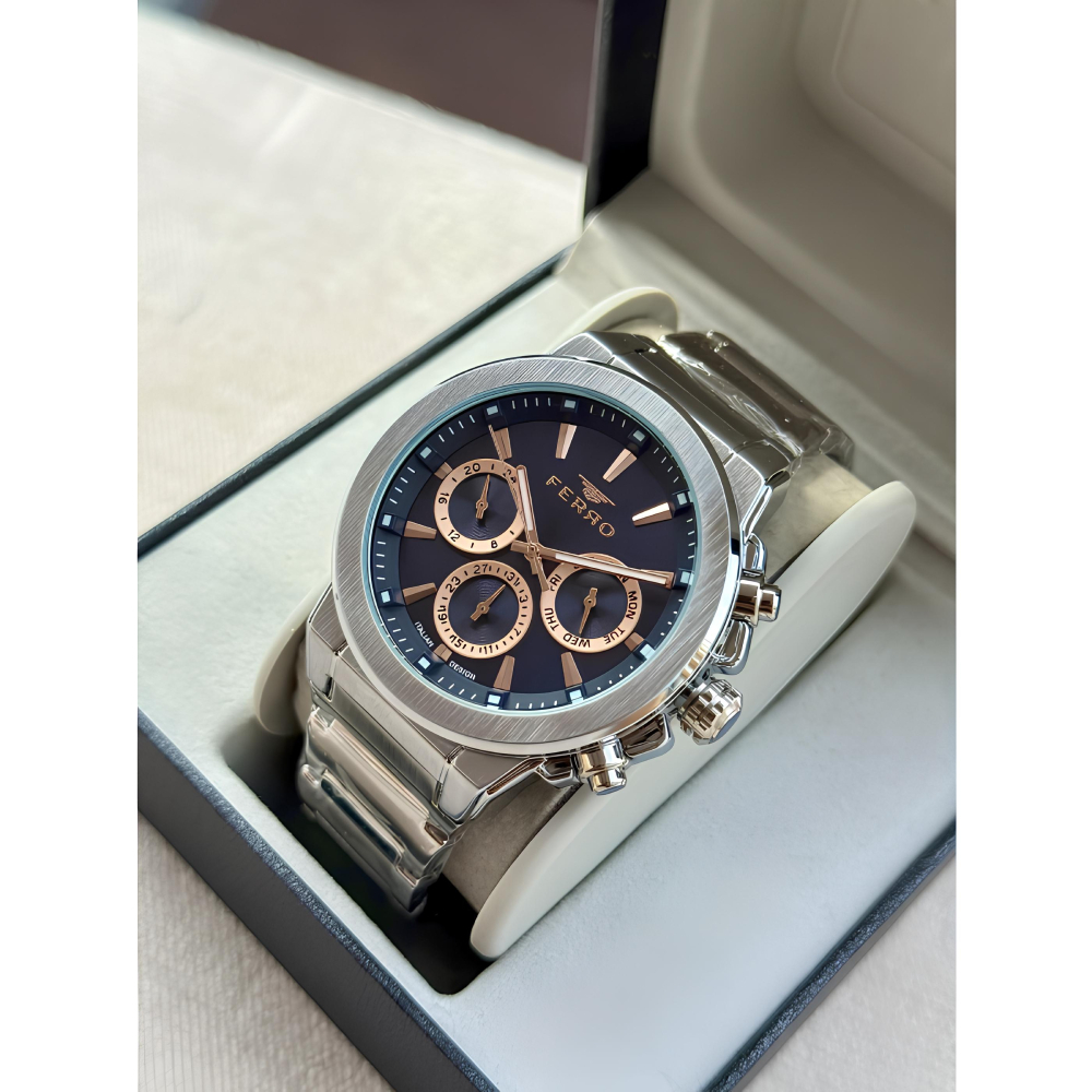 Ferro Gümüş Renk Çelik Kordon Erkek Kol Saati Fonksiyonlar Aktif 3 ATM Su Geçirmez TH-FM40123A-A3
