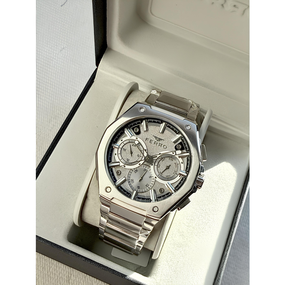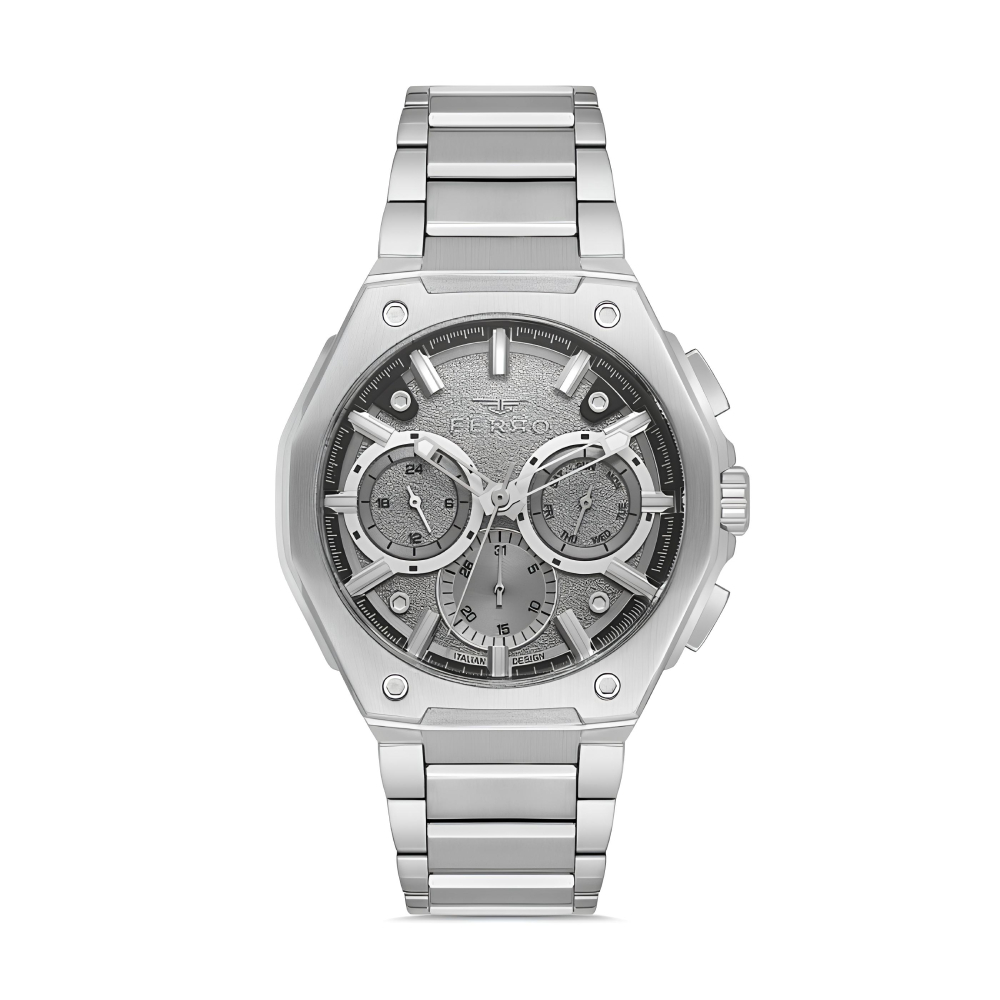Ferro Gümüş Renk Çelik Kordon Erkek Kol Saati Fonksiyonlar Aktif 3 ATM Su Geçirmez TH-FM43023AWT-A4
