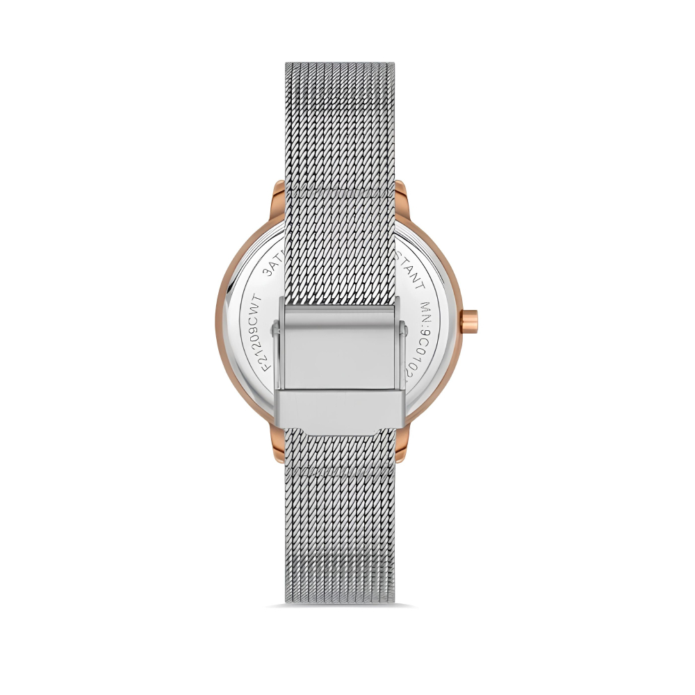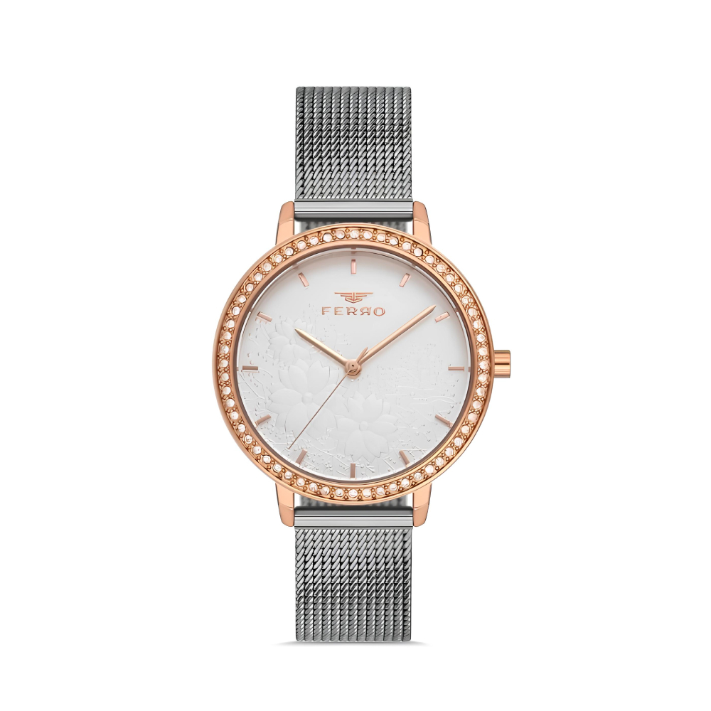 Ferro Gümüş Renk Hasır Kordon Kadın Kol Saati 3 ATM Su Geçirmez TH-FL21242C-E